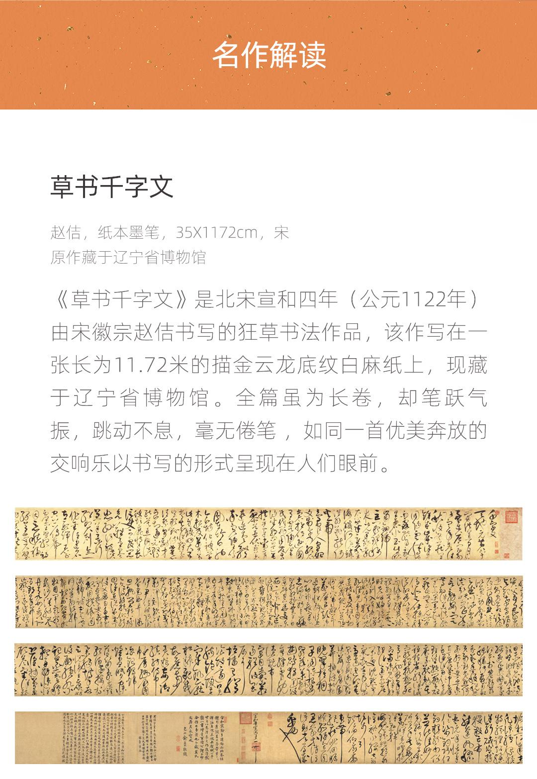 宋徽宗《草书千字文》简版手卷,原作超清复刻,宣纸画芯手工托裱 简介