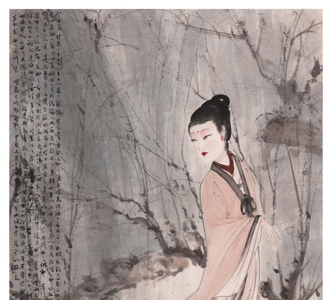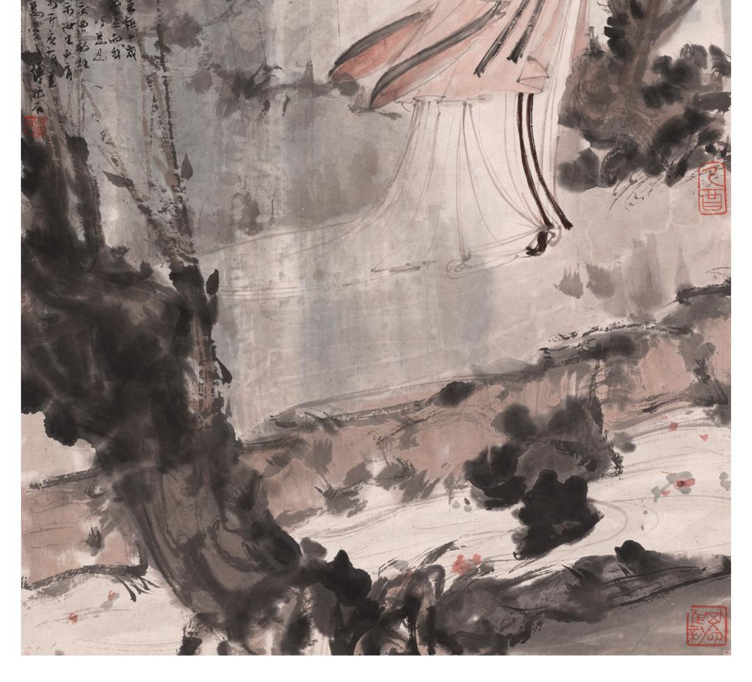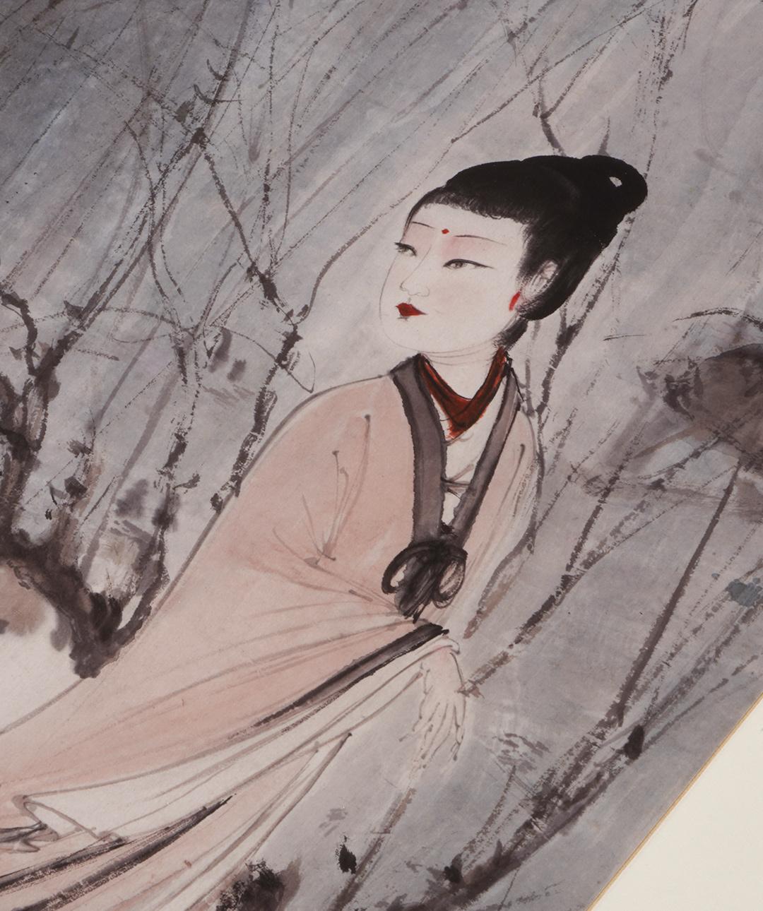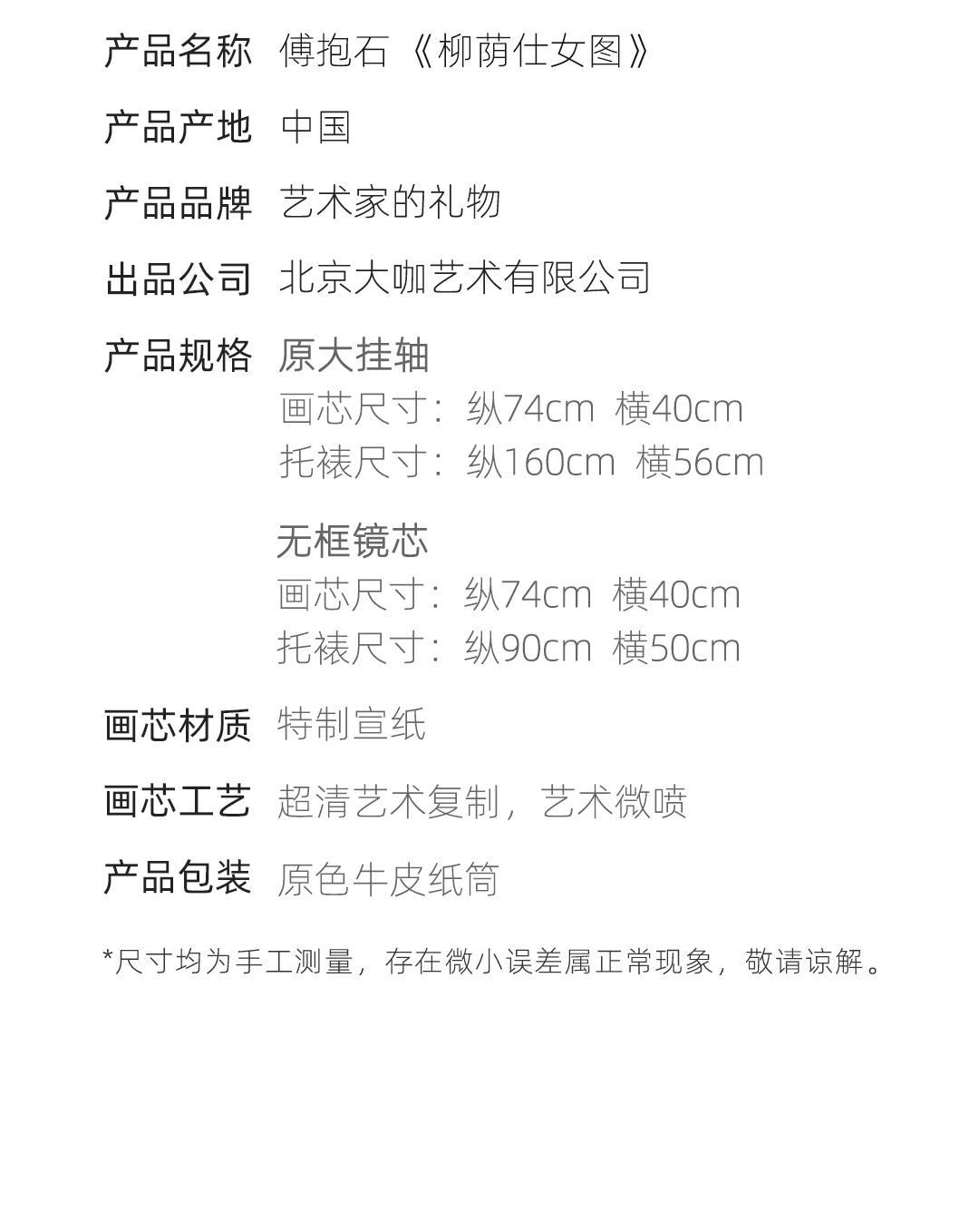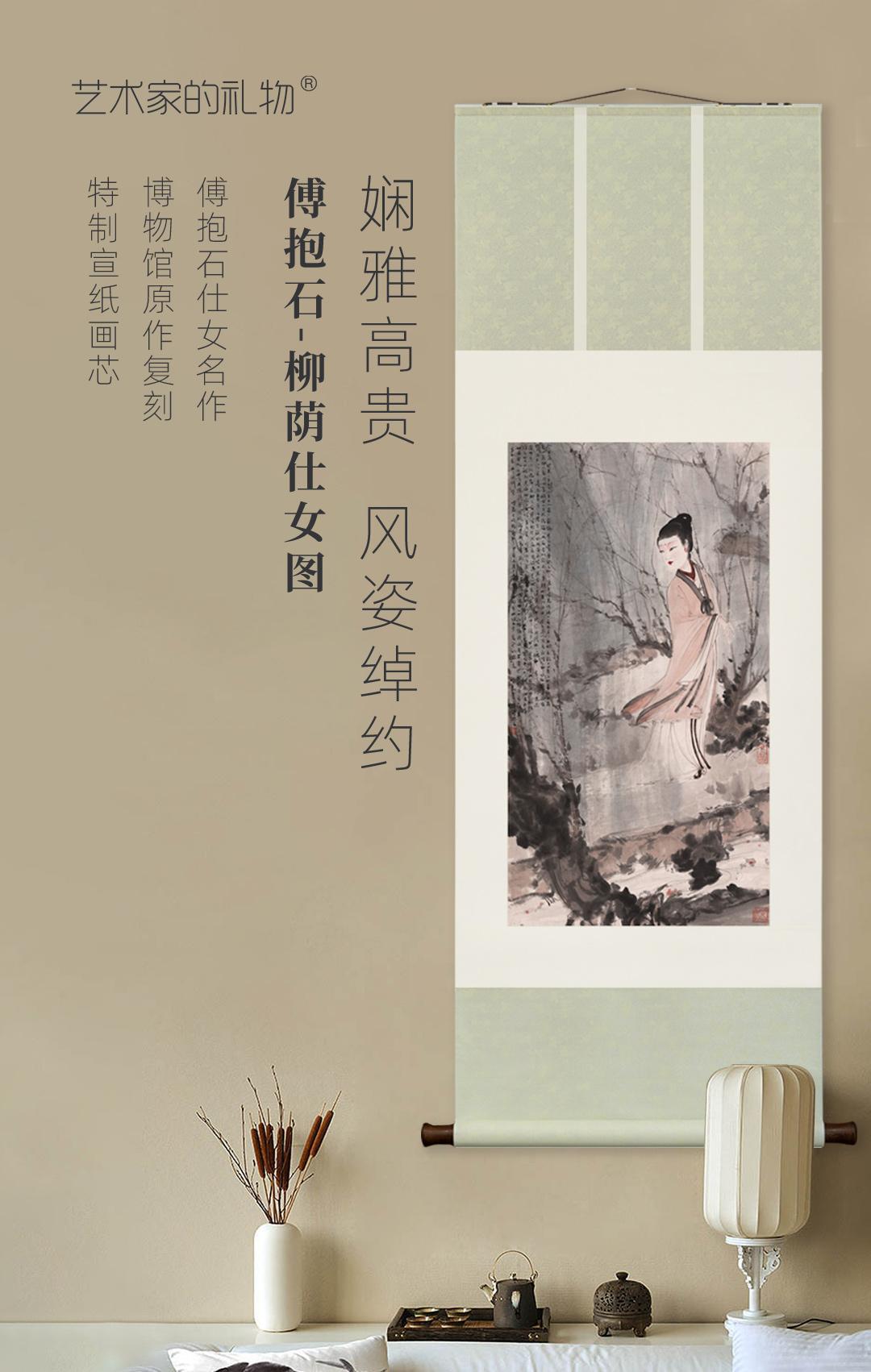 傅抱石《柳荫仕女图》挂轴/镜芯特制宣纸画芯原大超清复刻精裱 简介