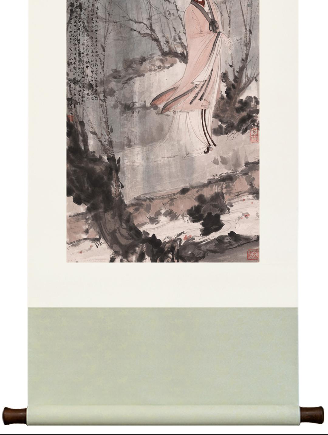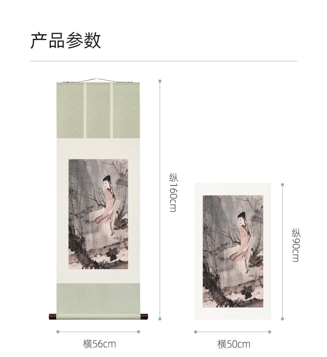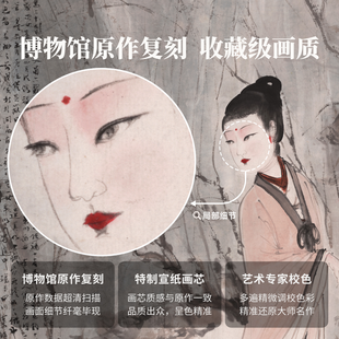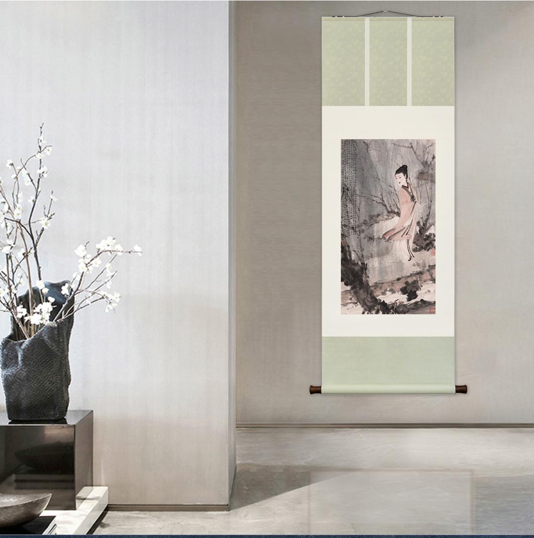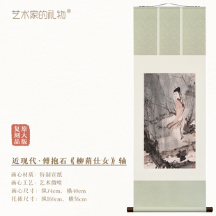 傅抱石《柳荫仕女图》挂轴/镜芯特制宣纸画芯原大超清复刻精裱