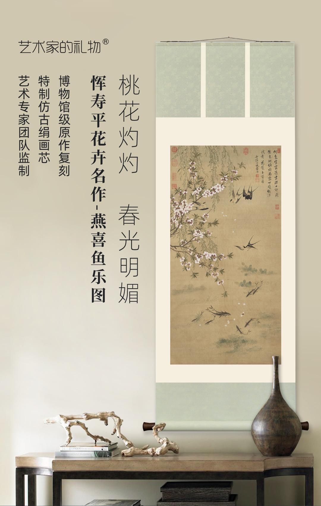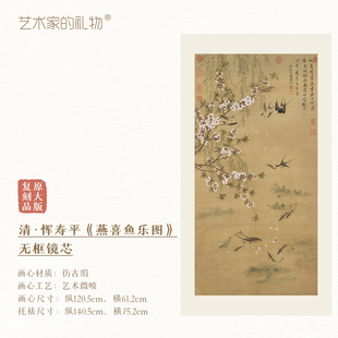清恽寿平《燕喜鱼乐图》精裱挂轴仿古绢画芯原作超清复刻 简介