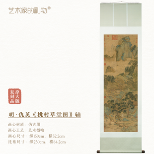 明·仇英《桃村草堂图》原大挂轴仿古绢画芯博物馆级超清复刻 简介