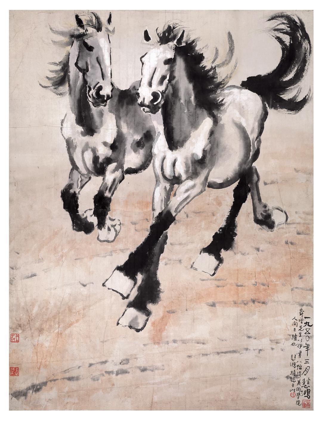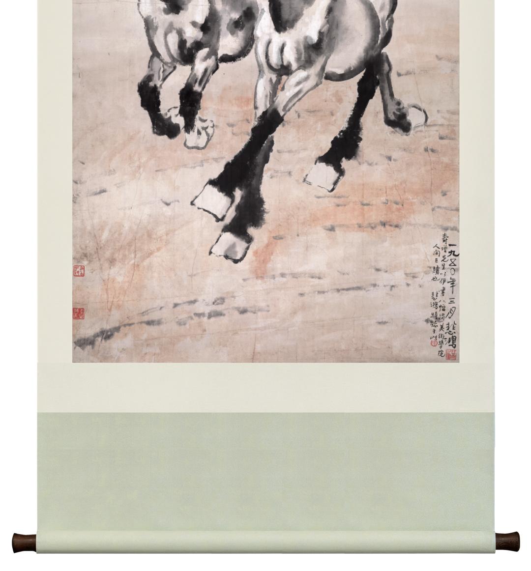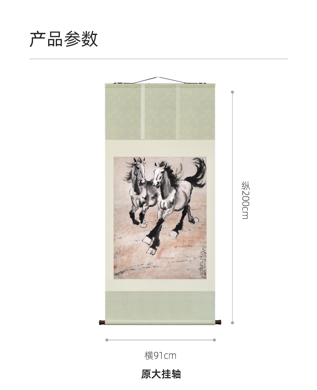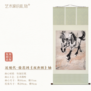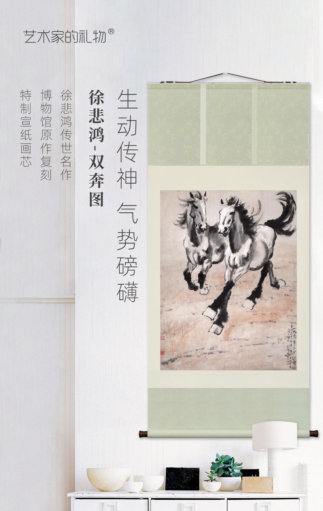 徐悲鸿《双奔图》挂轴/镜芯原作超清复刻新中式书房挂画立轴