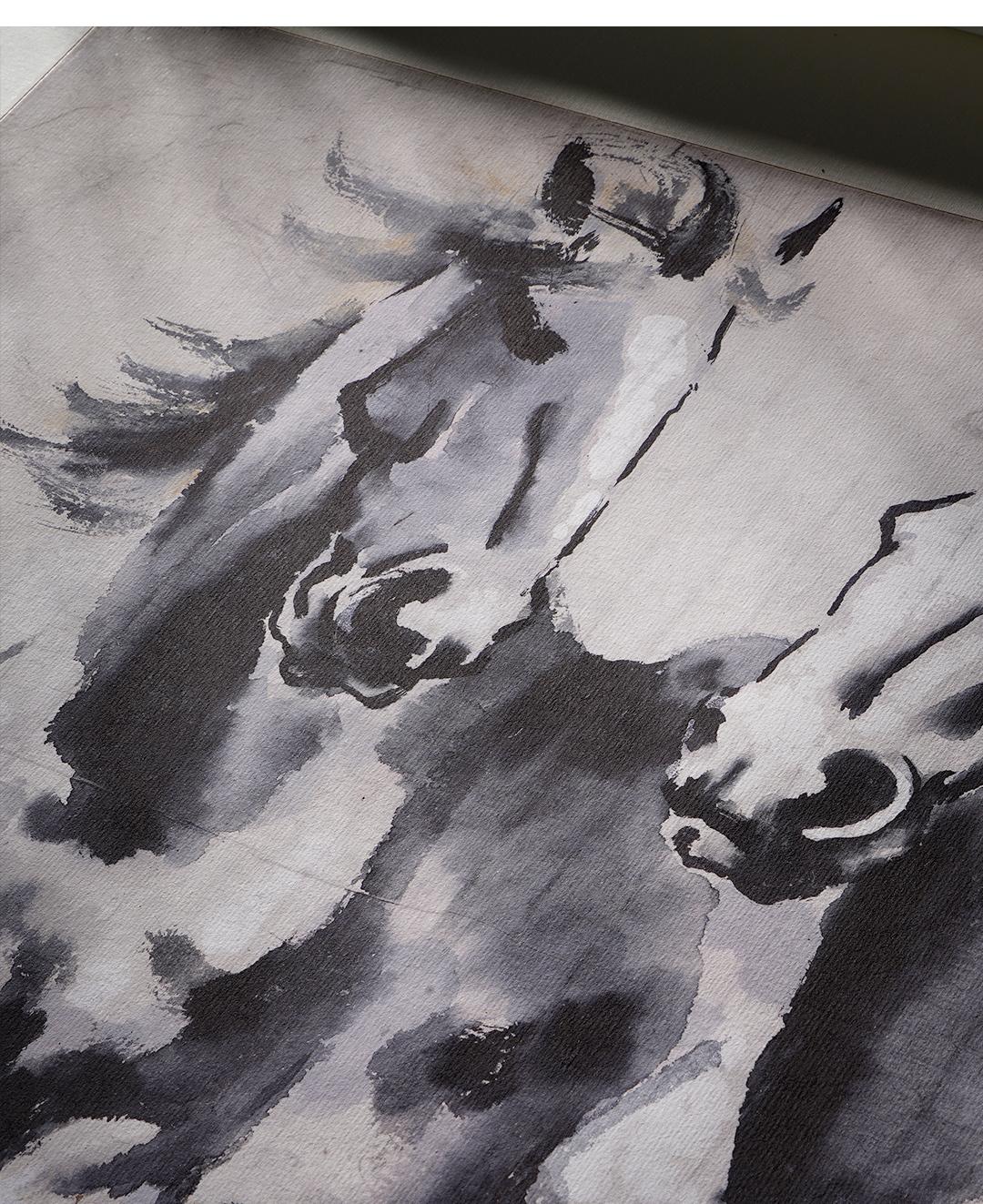 徐悲鸿《双奔图》挂轴/镜芯原作超清复刻新中式书房挂画立轴 简介