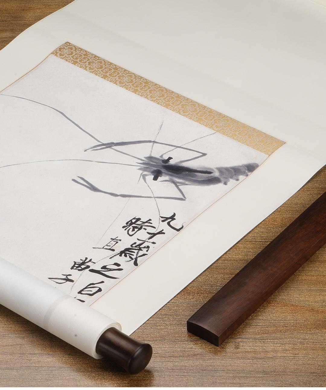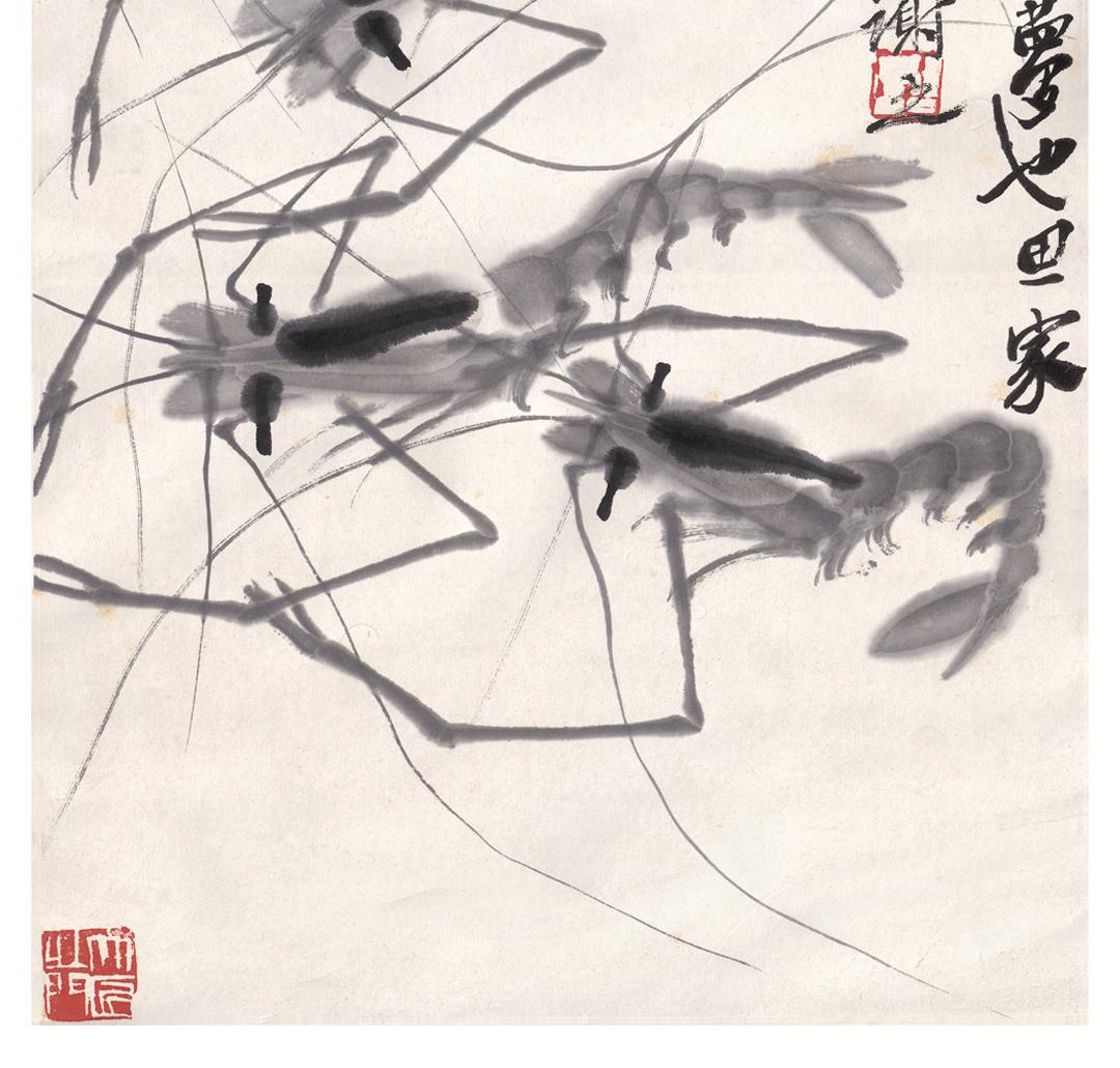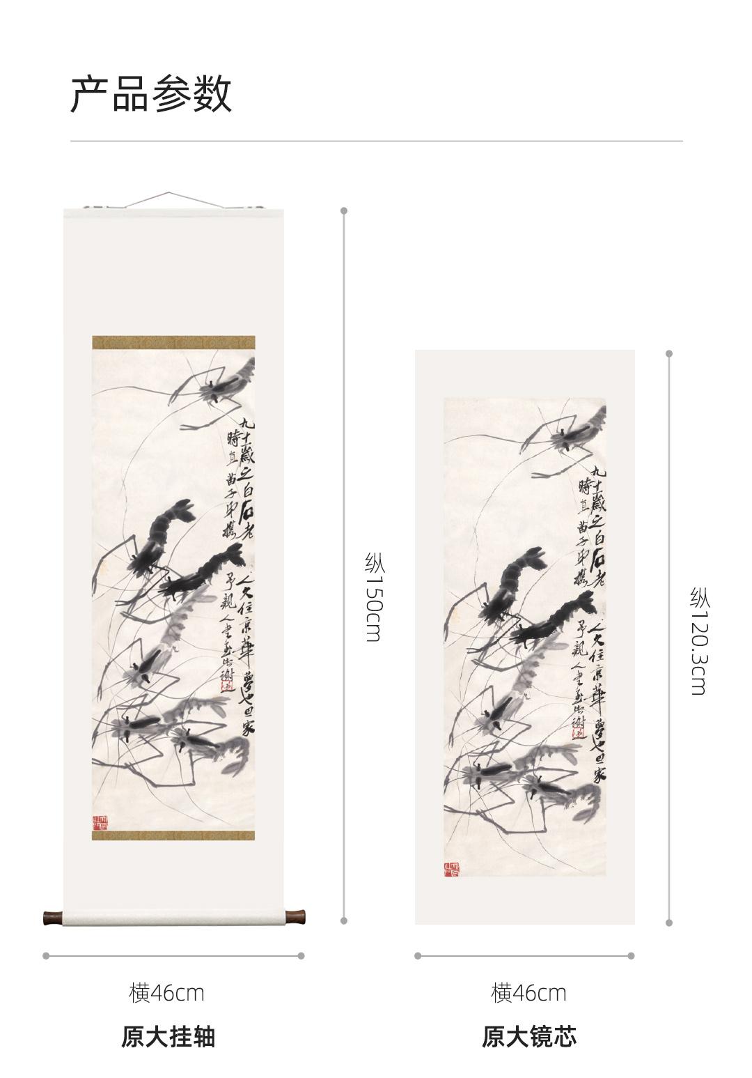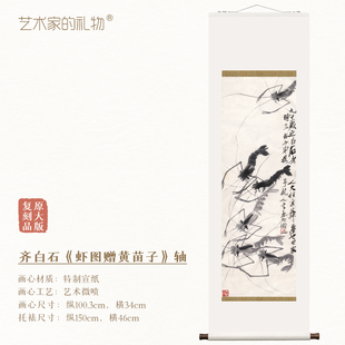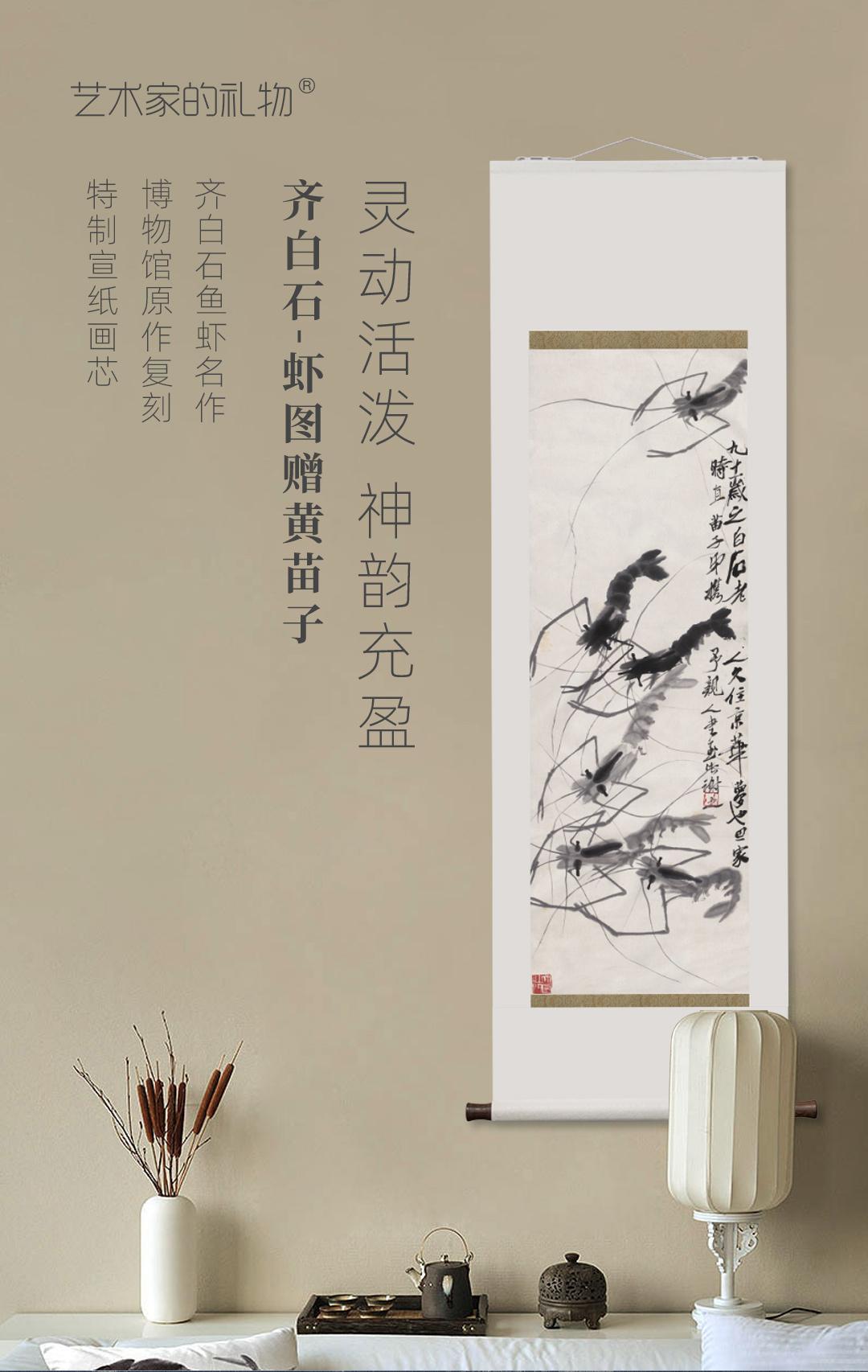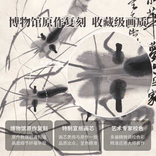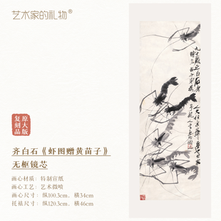 齐白石《虾图赠黄苗子》挂轴/镜芯,原作超清复刻,特制宣纸画芯 简介