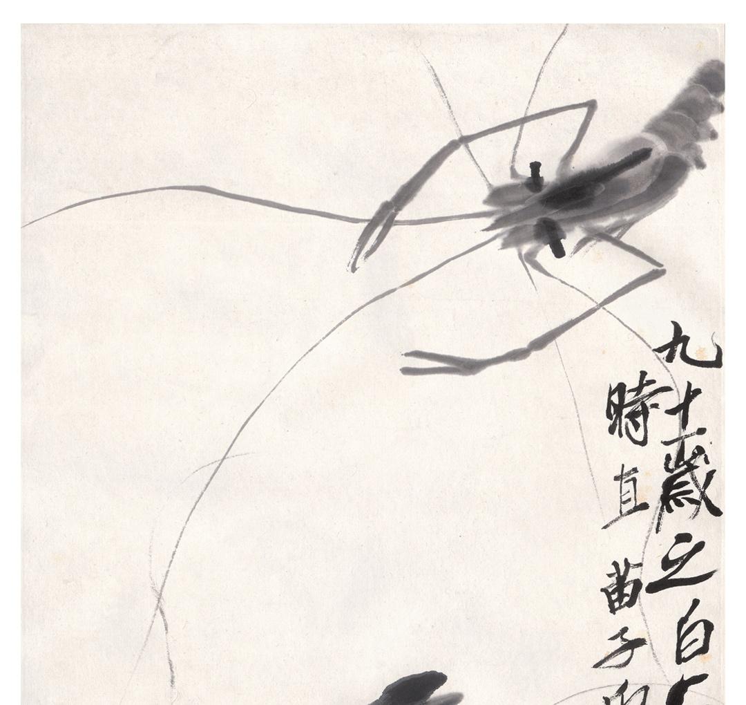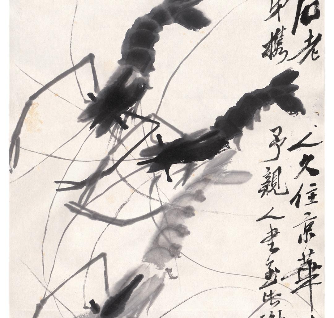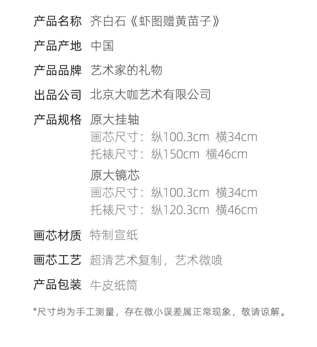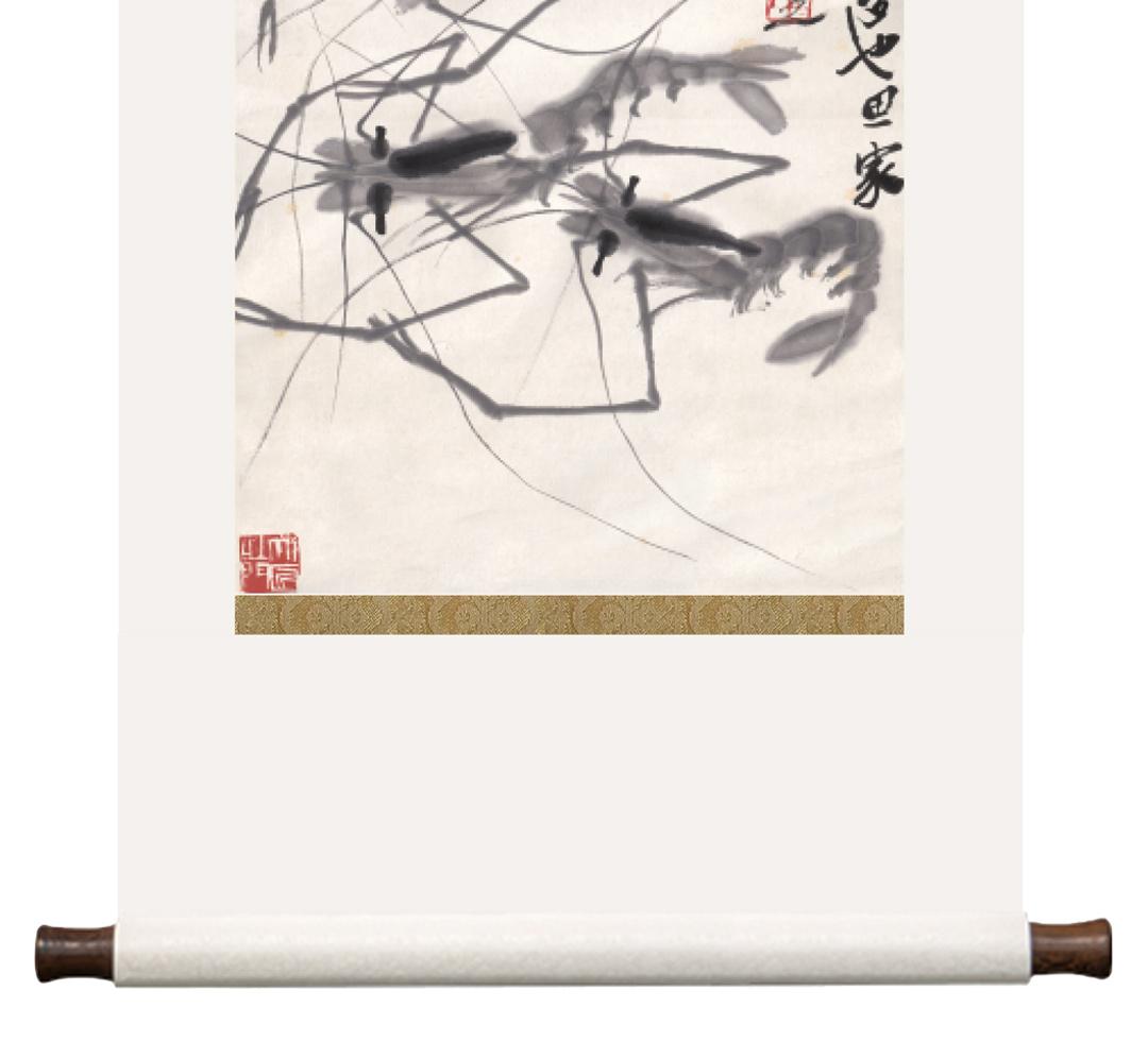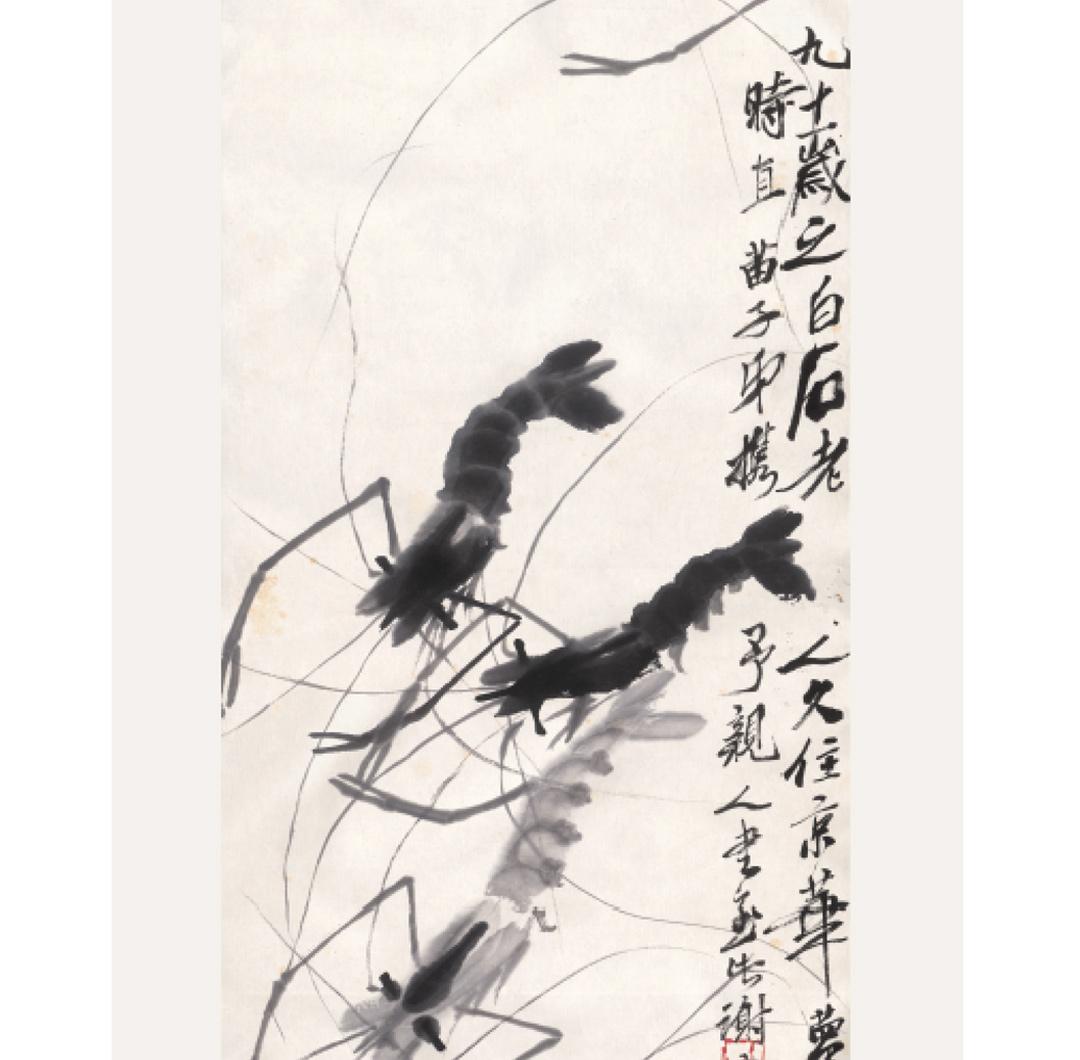齐白石《虾图赠黄苗子》挂轴/镜芯,原作超清复刻,特制宣纸画芯 简介