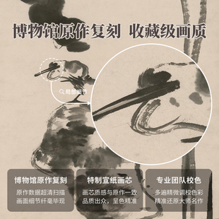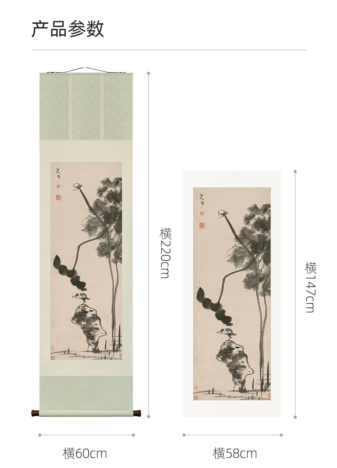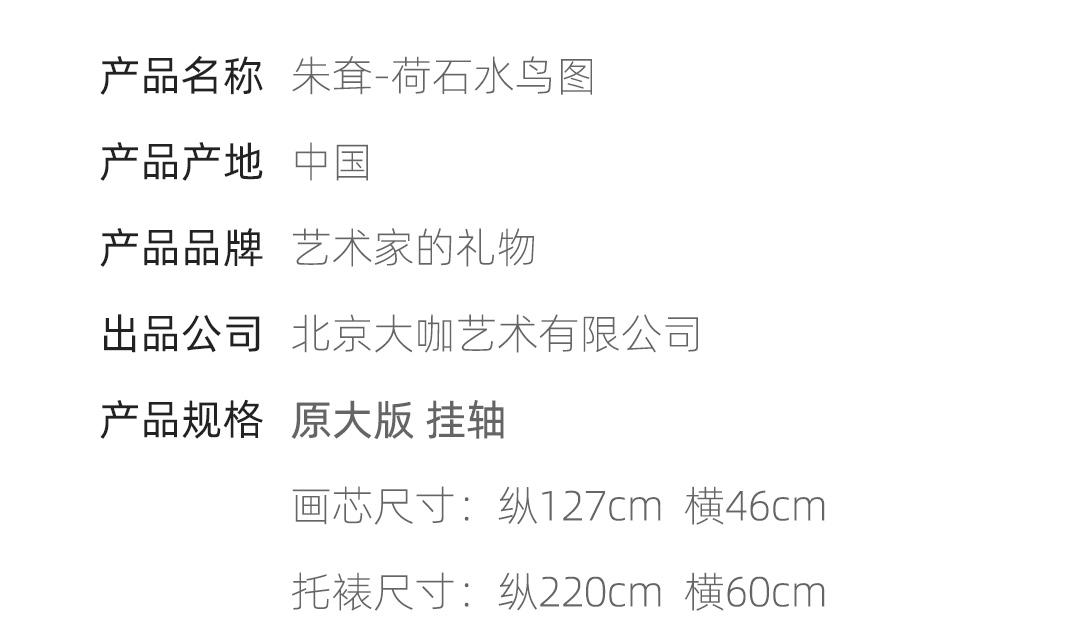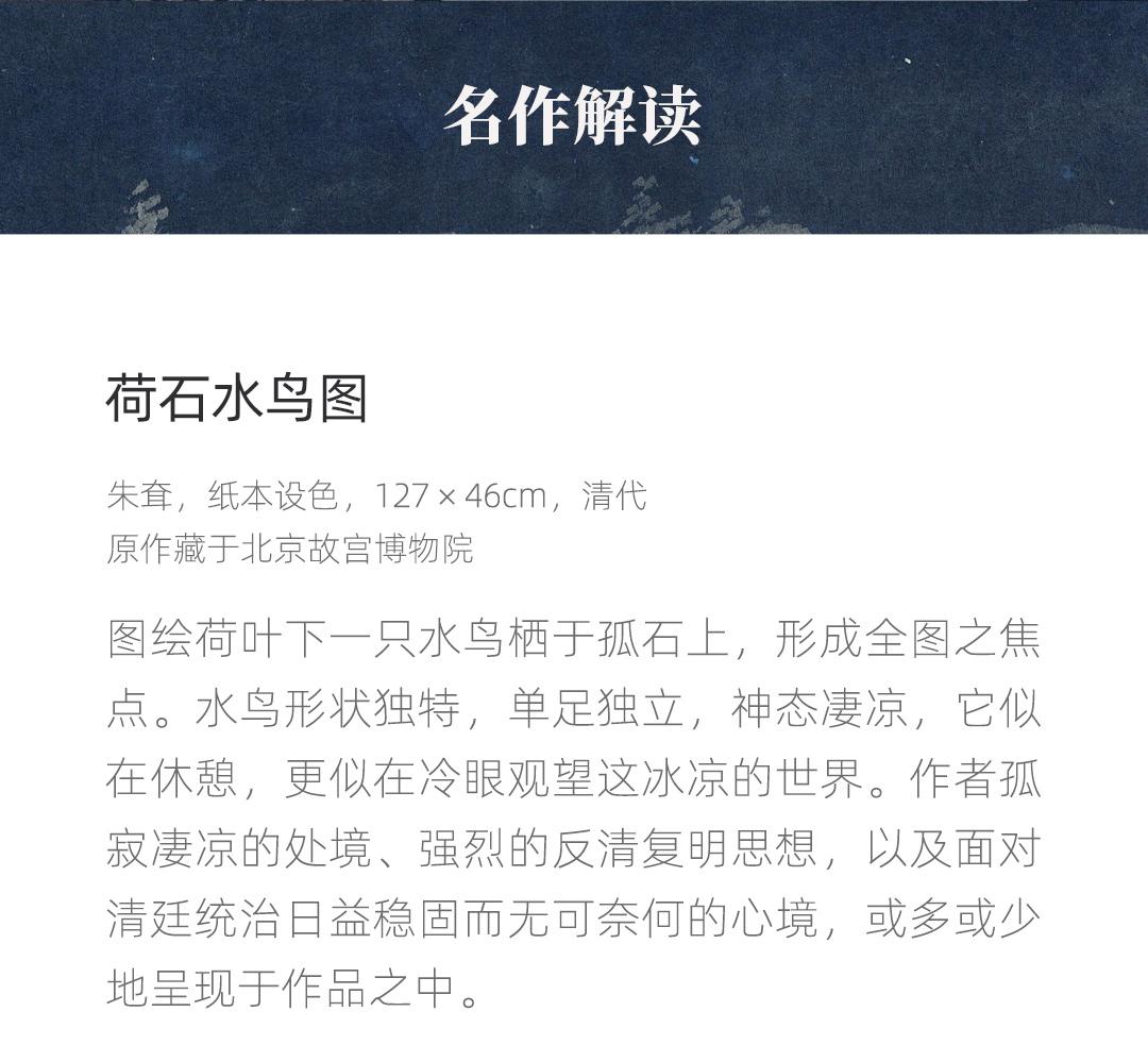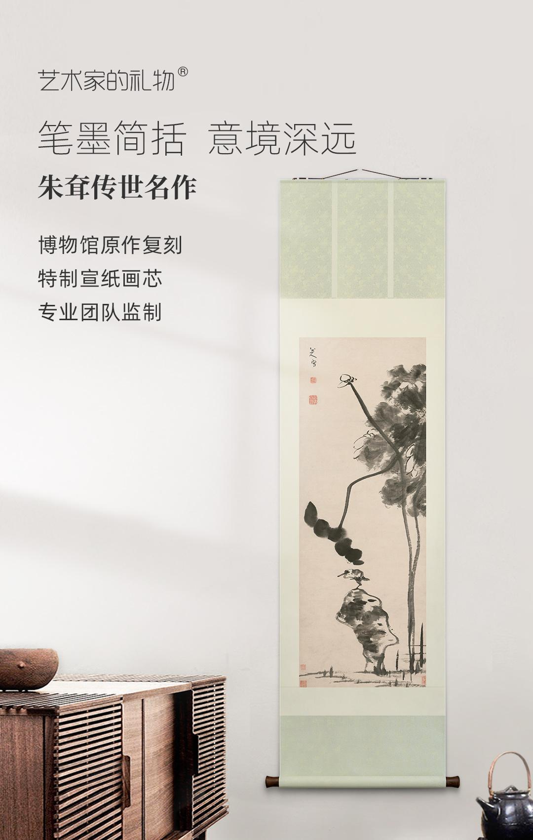 朱耷《荷石水鸟图》挂轴/镜芯,原作超清复刻版画,特制宣纸画芯 简介