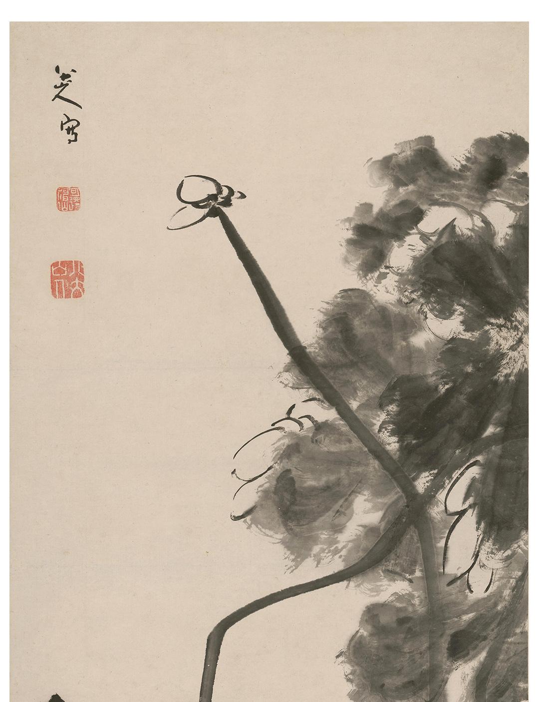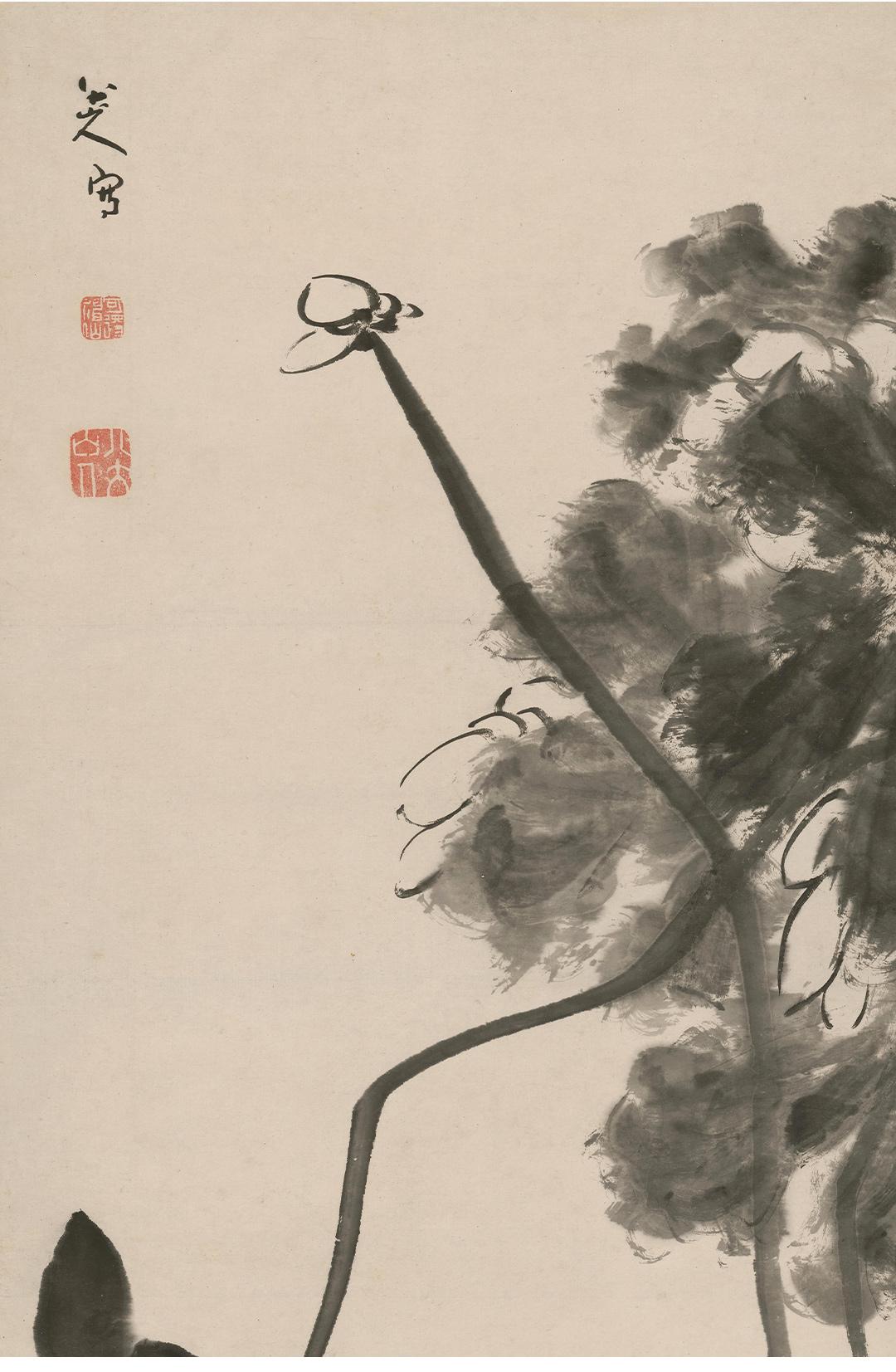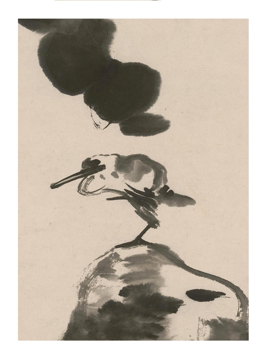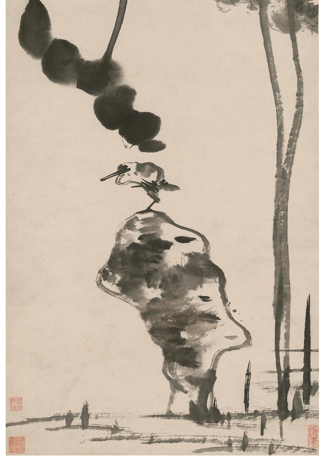 朱耷《荷石水鸟图》挂轴/镜芯,原作超清复刻版画,特制宣纸画芯 简介