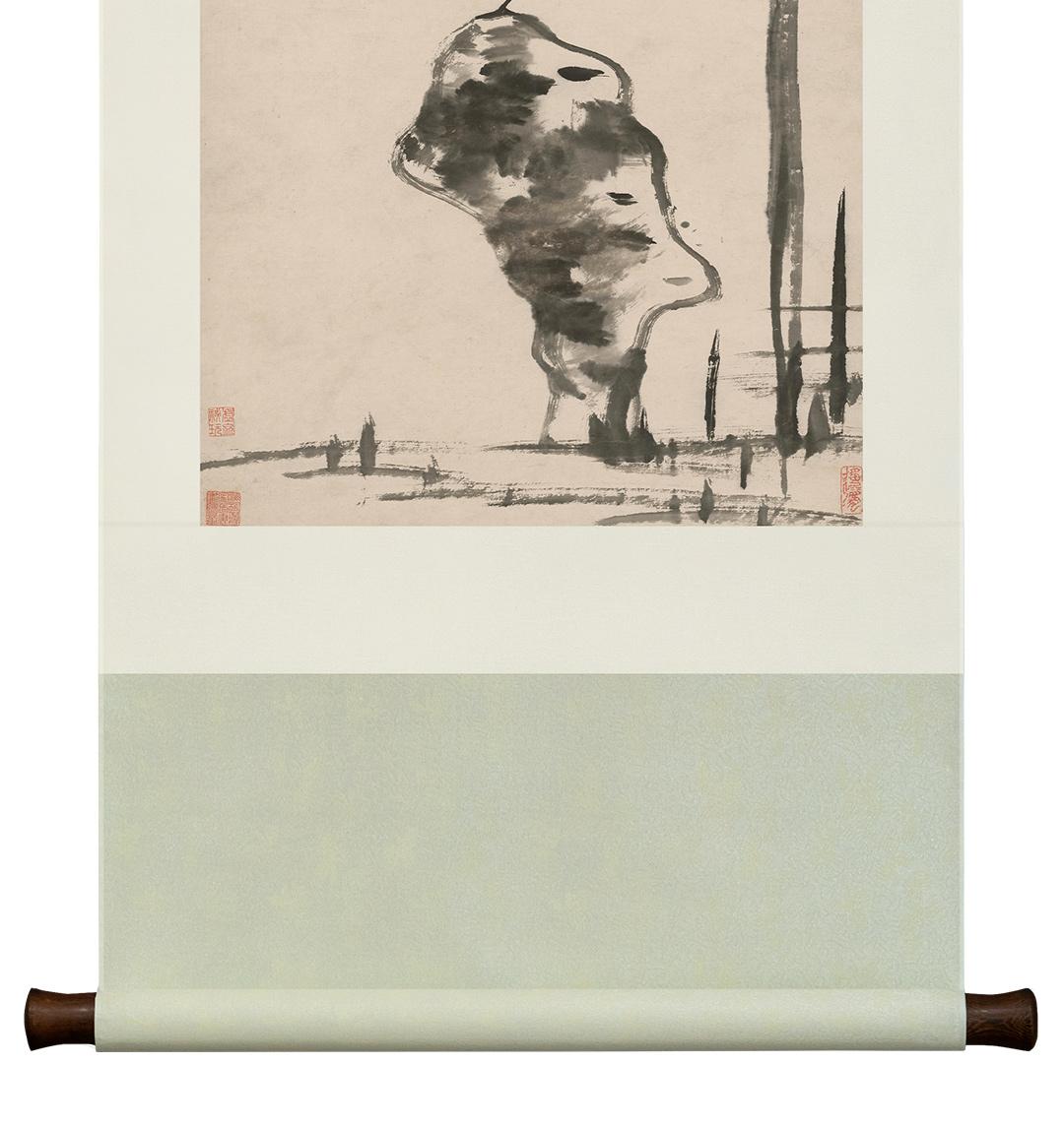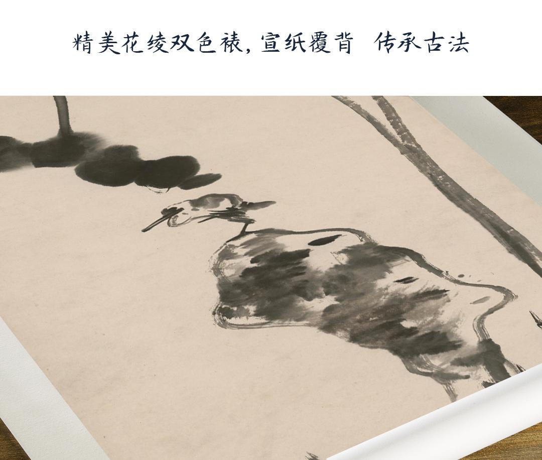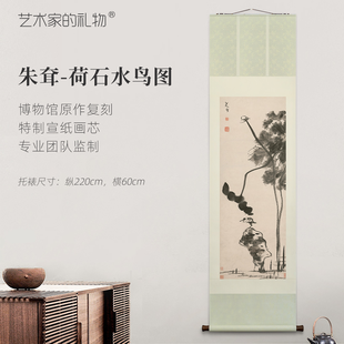 朱耷《荷石水鸟图》挂轴/镜芯,原作超清复刻版画,特制宣纸画芯