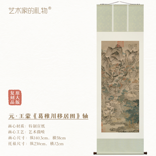 王蒙《葛稚川移居图》镜芯挂轴 博物馆原作复刻版画 特制宣纸画芯