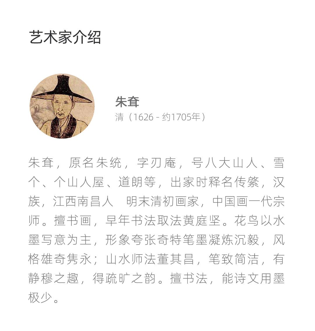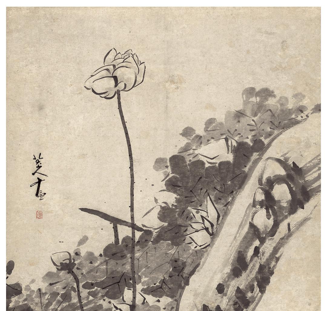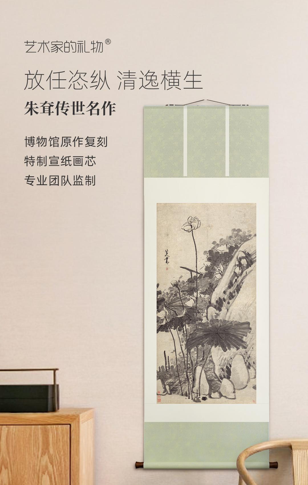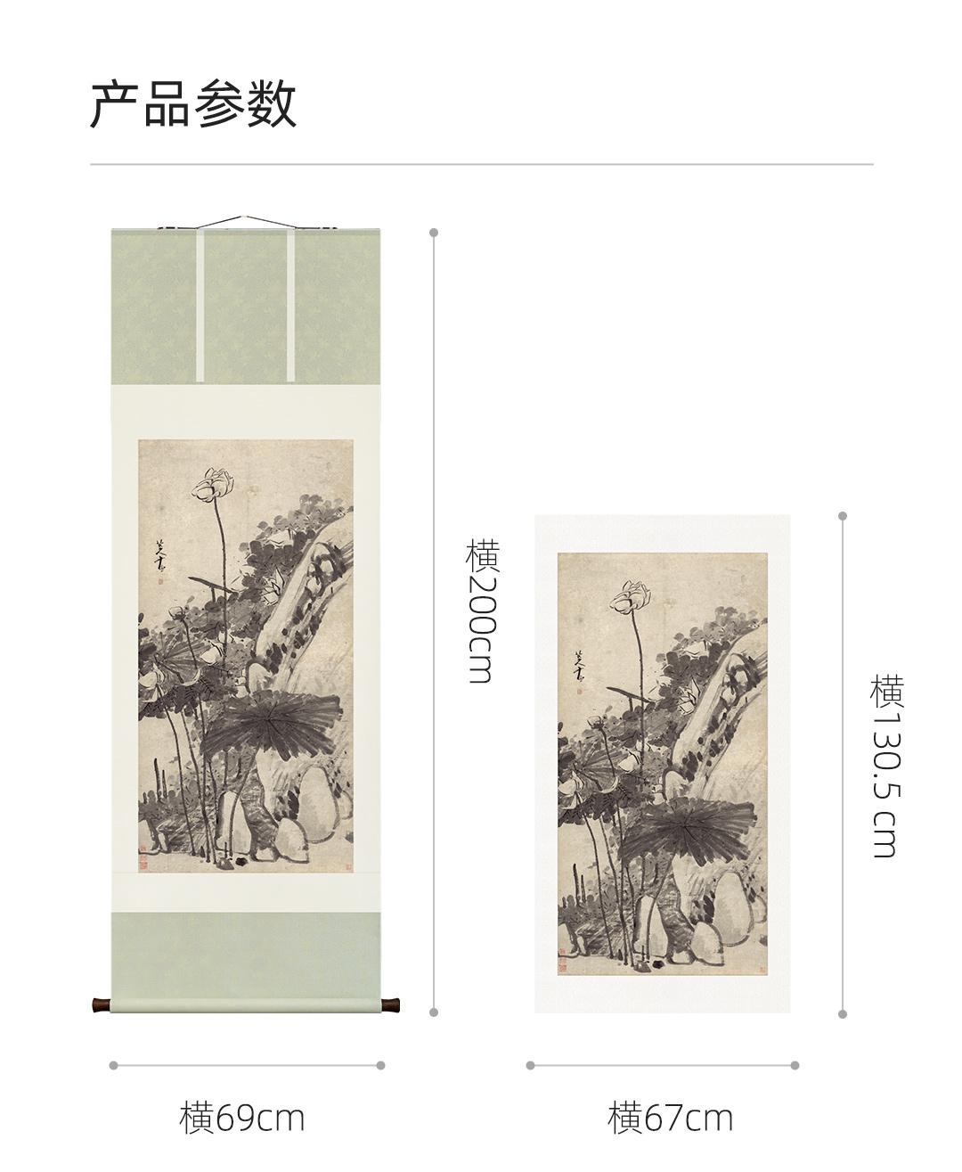 朱耷《墨荷图》挂轴/镜芯,原作超清复刻版画,特制宣纸画芯 简介