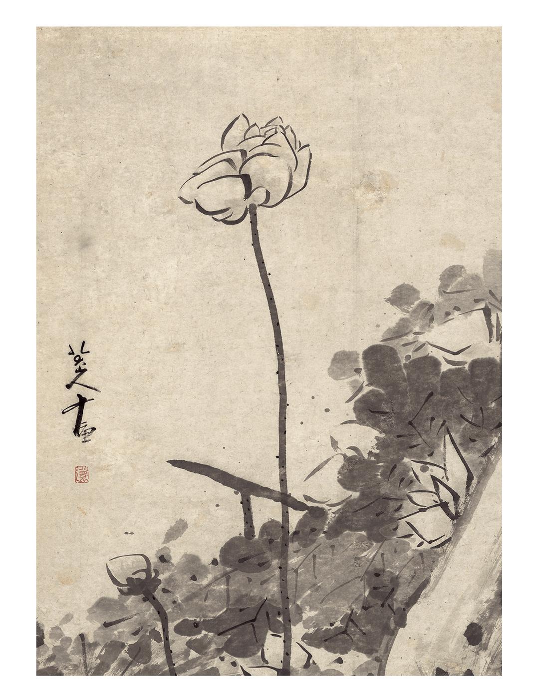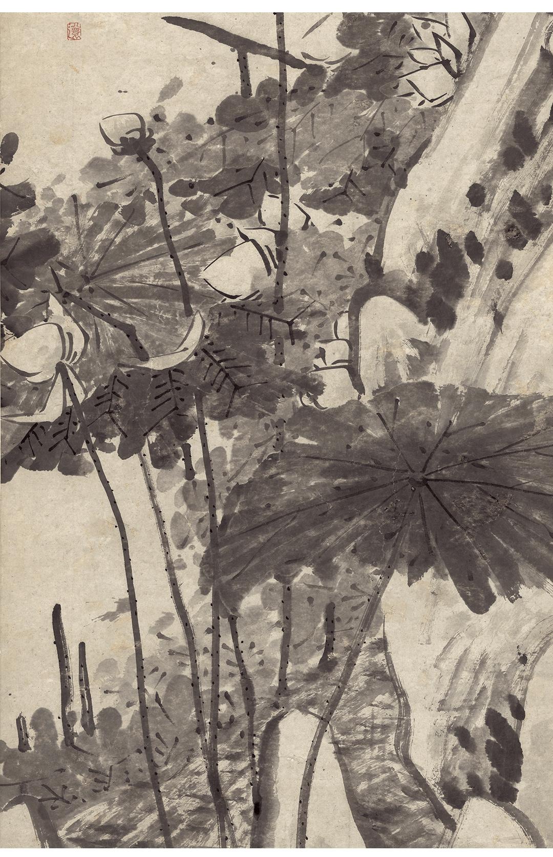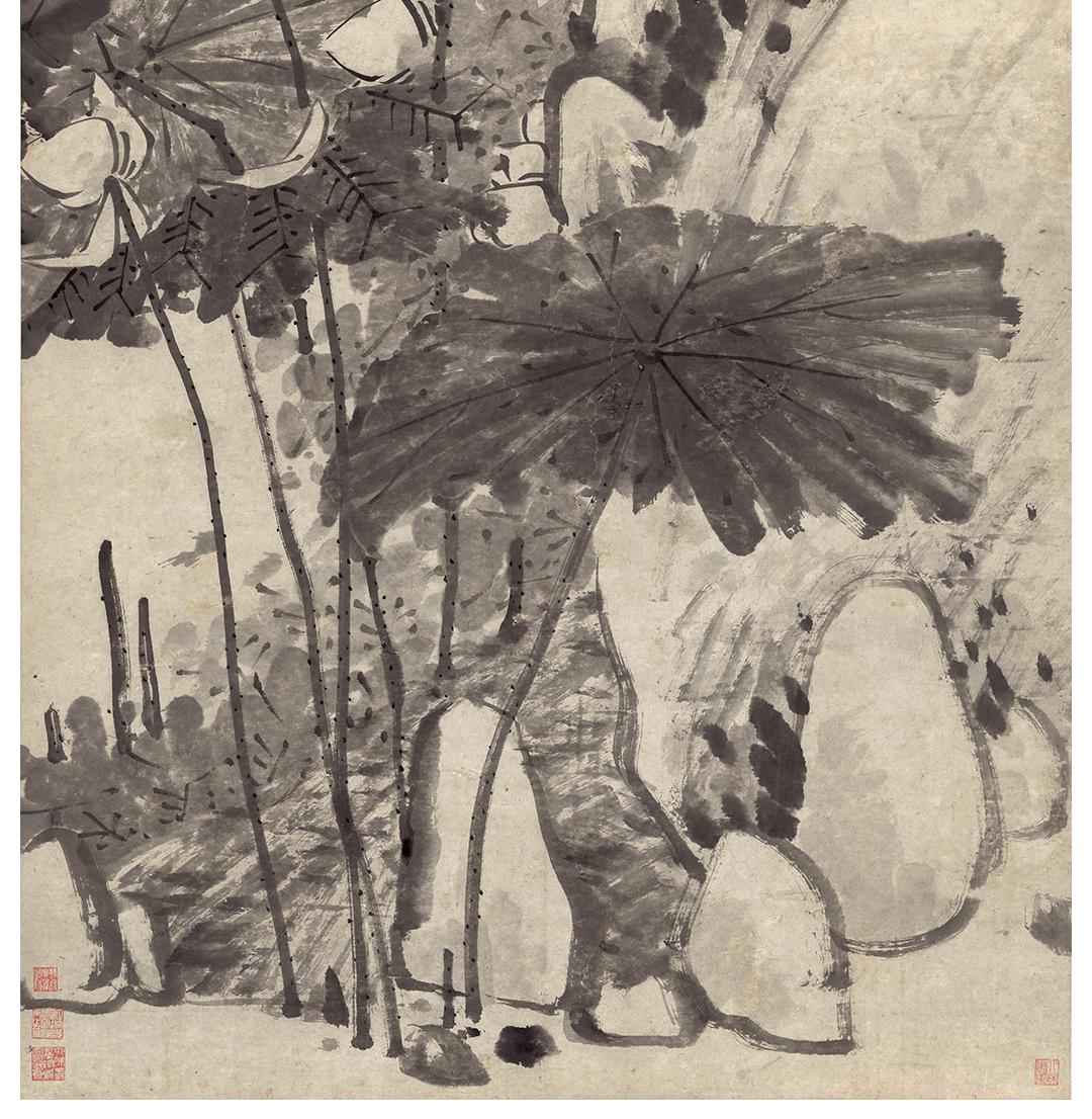 朱耷《墨荷图》挂轴/镜芯,原作超清复刻版画,特制宣纸画芯 简介
