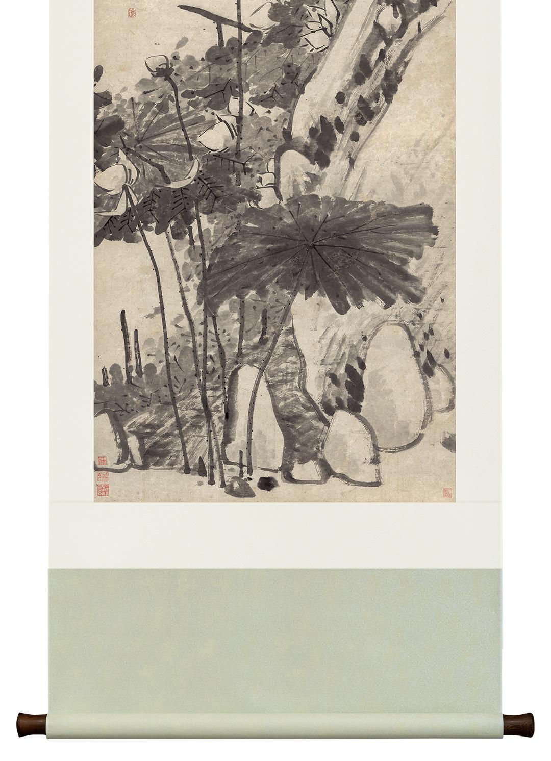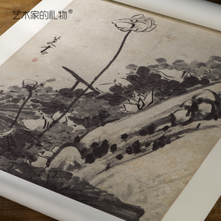 朱耷《墨荷图》挂轴/镜芯,原作超清复刻版画,特制宣纸画芯