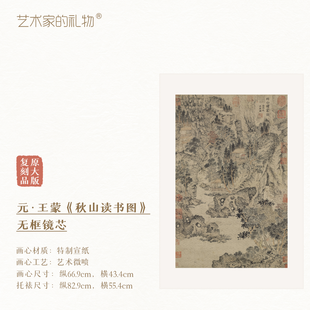元·王蒙《秋山读书图》原大复刻 特制宣纸画芯 精工装裱镜芯挂轴