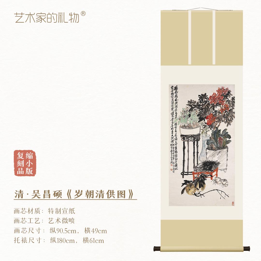 清·吴昌硕《岁朝清供图》挂轴/镜芯 绢丝画芯 原作超清复刻精裱 简介