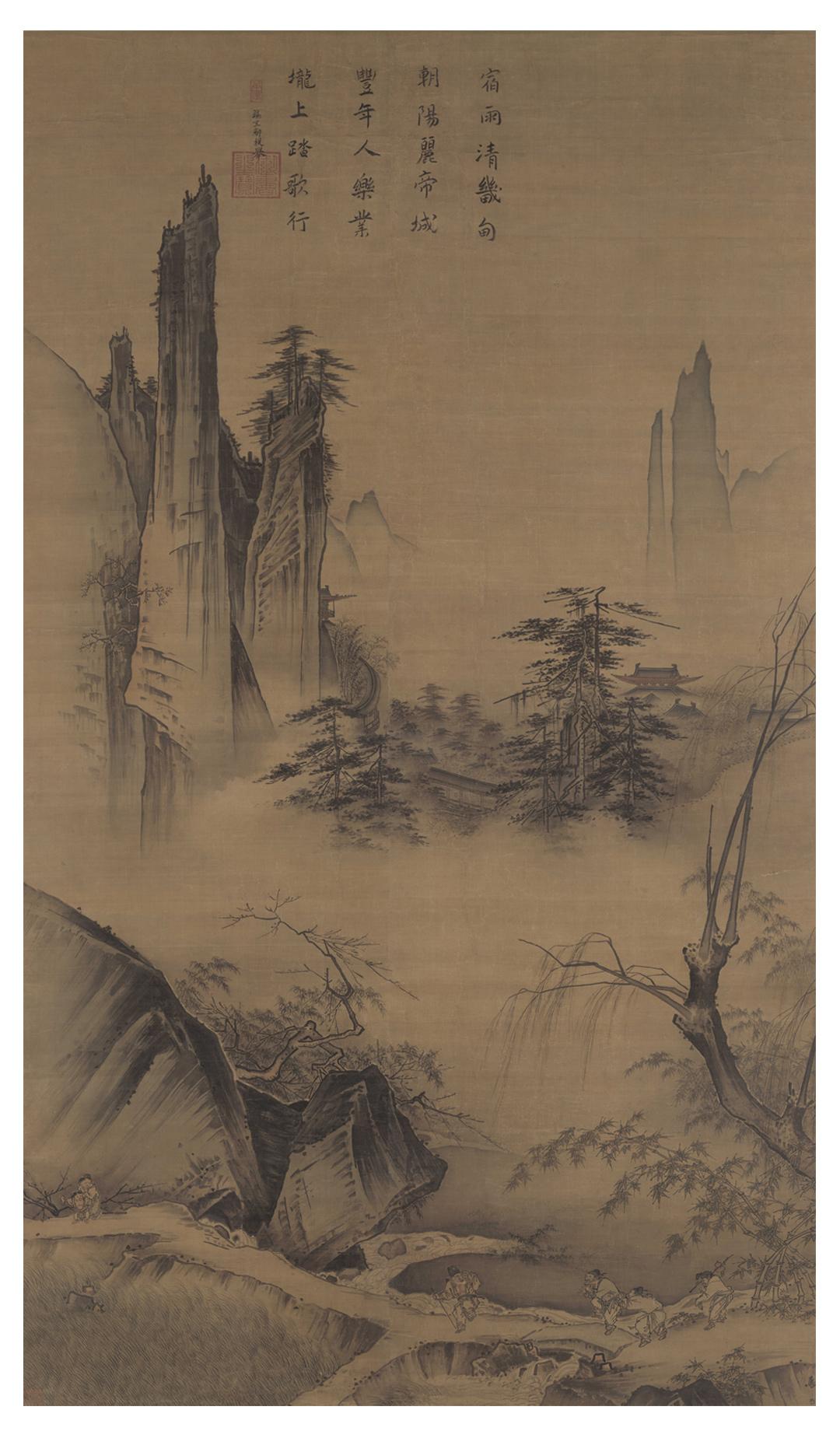 宋·马远《踏歌图》挂轴镜芯,原作超清复刻,仿古绢丝画芯