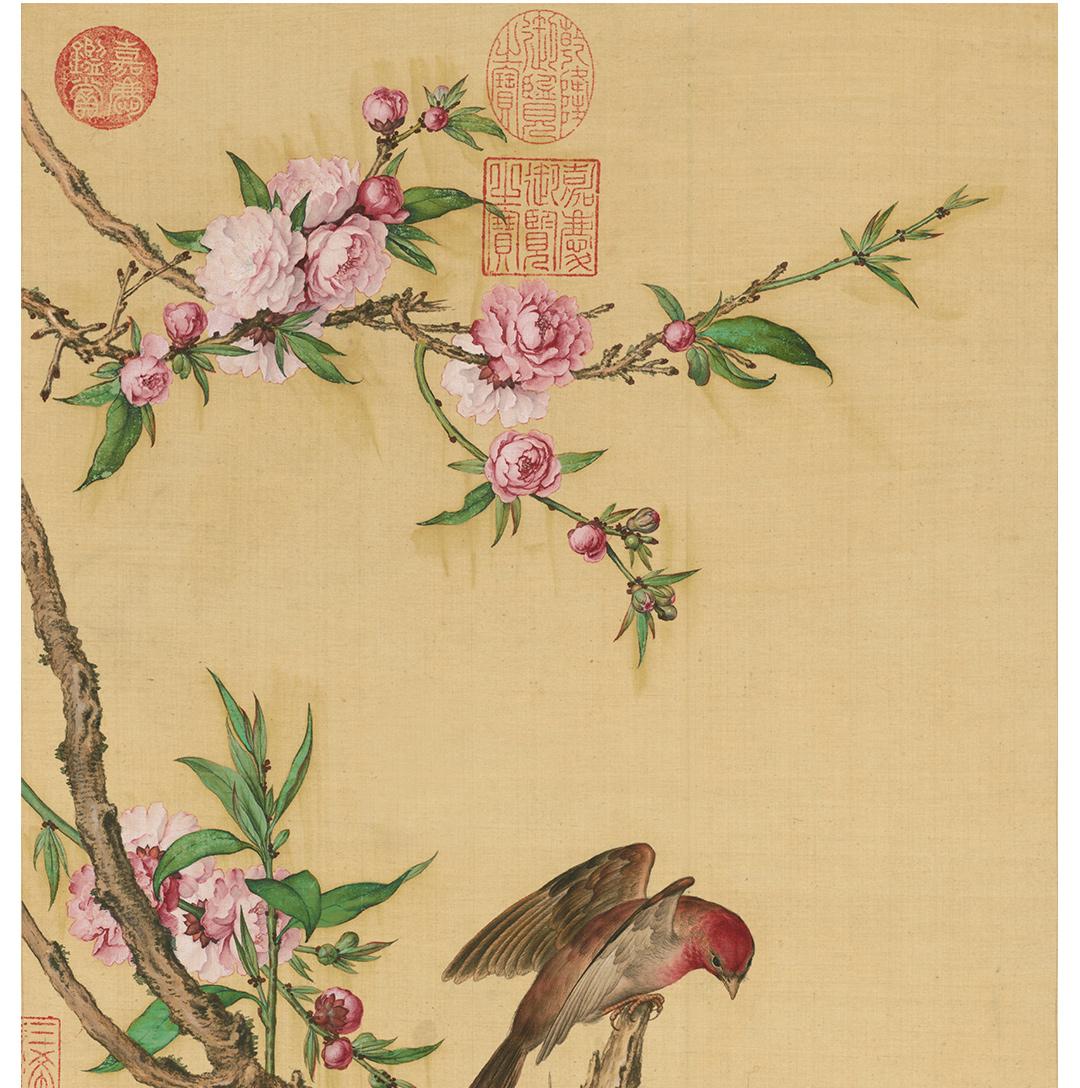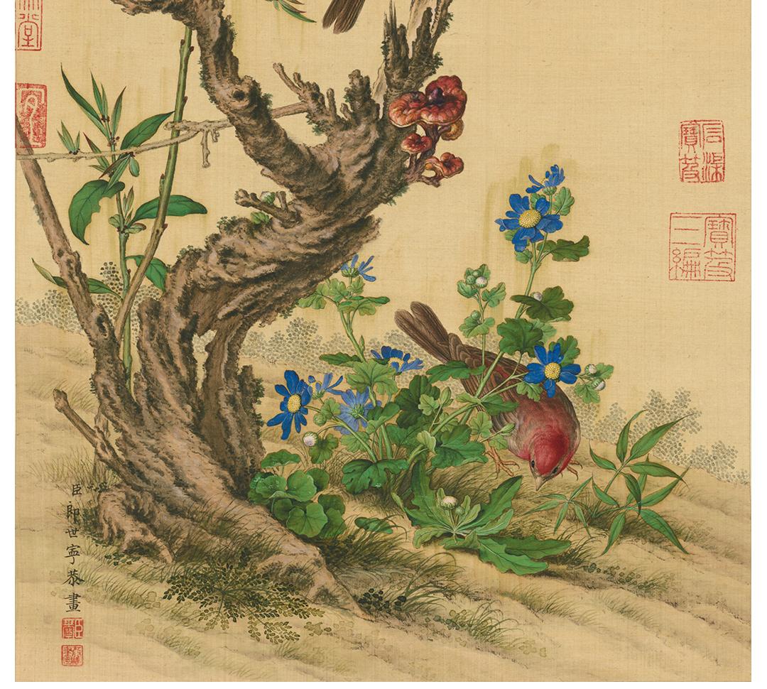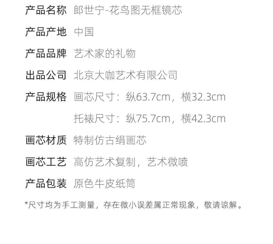 清·郎世宁《花鸟图》挂轴/镜芯 绢丝画芯 原作超清复刻精裱 简介