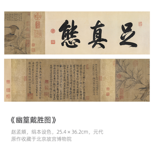 赵孟頫《幽篁戴胜图》原大复刻手卷,原作超清复刻,仿古绢丝画芯 简介
