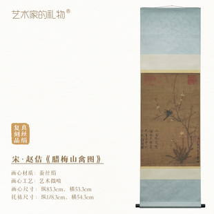 宋·赵佶《腊梅山禽图》挂轴真丝绢画芯古法手工精裱名画复刻 简介