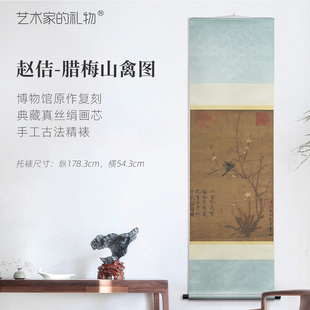 宋·赵佶《腊梅山禽图》挂轴真丝绢画芯古法手工精裱名画复刻