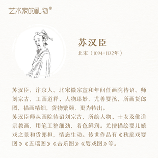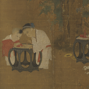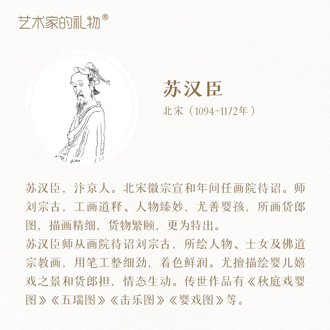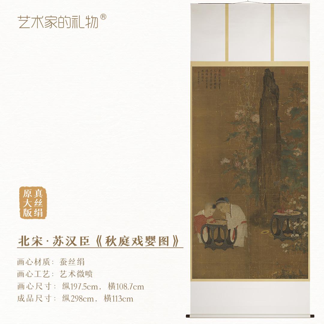 宋苏汉臣《秋庭戏婴图》原大挂轴真丝绢画芯手工精裱 简介