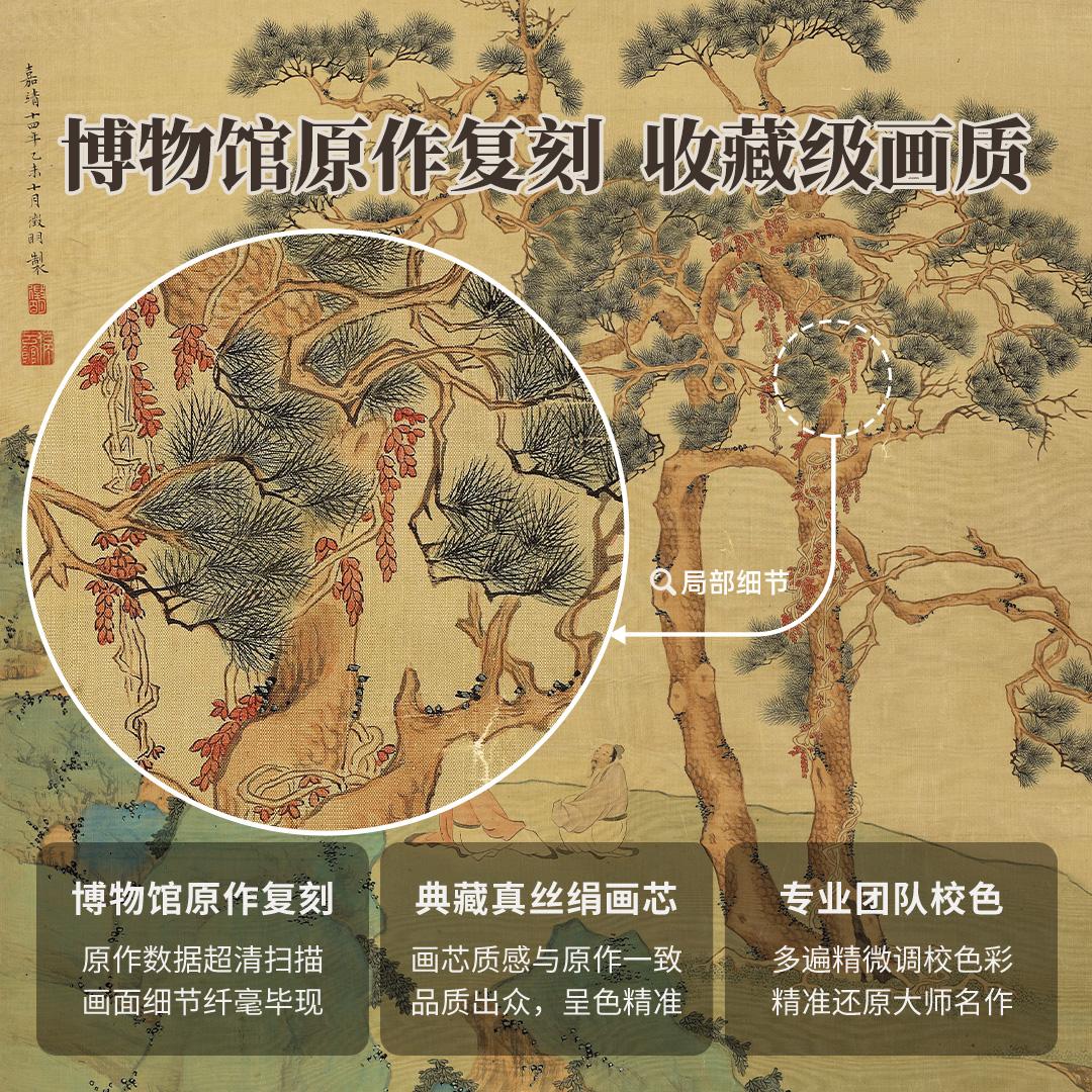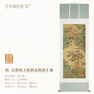 明●文征明《松阴高隐图》挂轴真丝绢画芯复刻手工精裱 简介