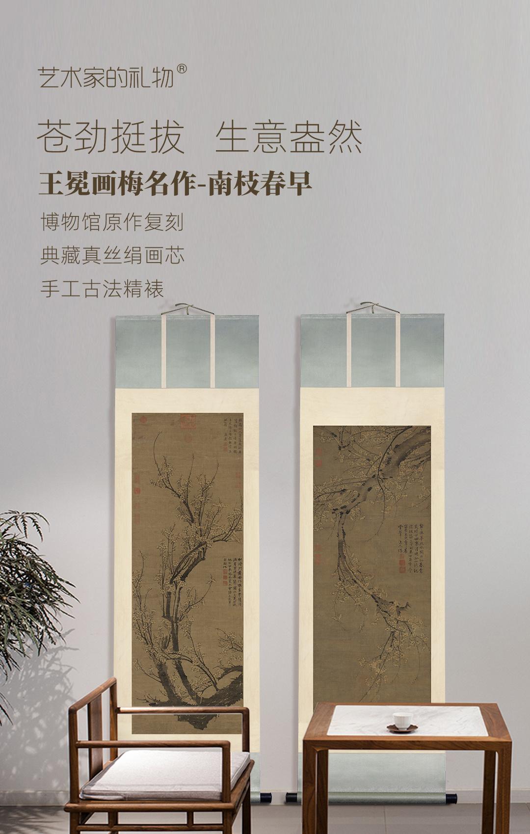 元.王冕《南枝春早》原大挂轴真丝绢画芯古法手工精裱 简介