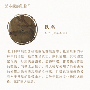五代.佚名《丹枫呦鹿图》原大挂轴真丝绢画芯手工精裱 简介