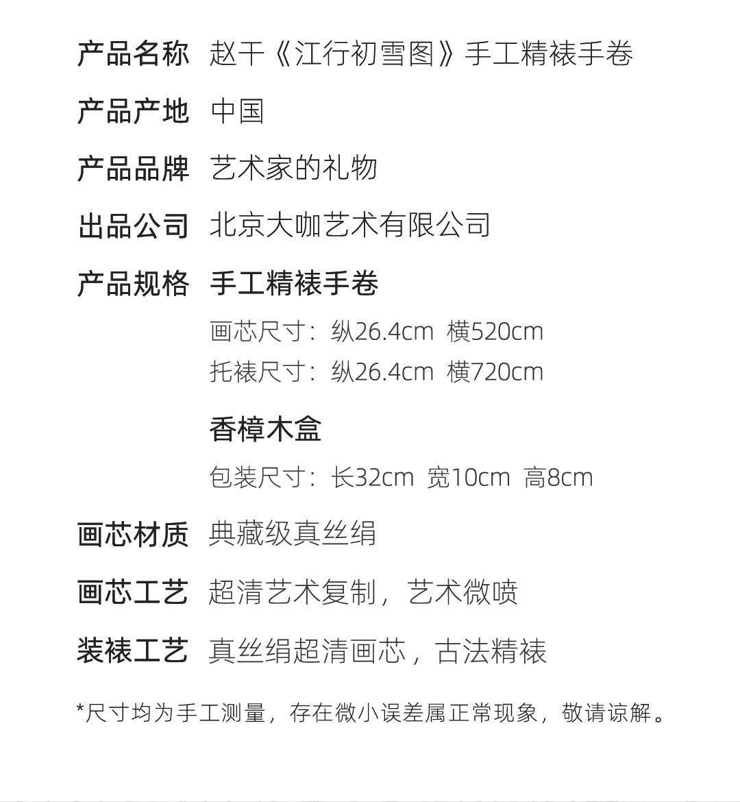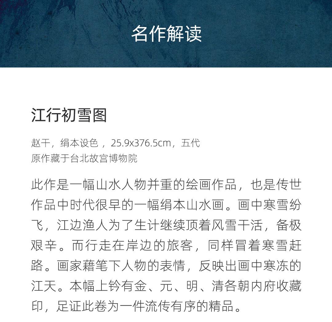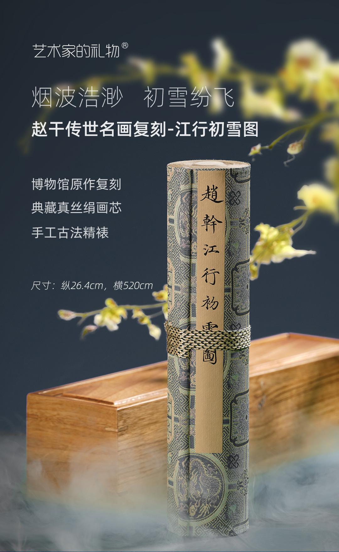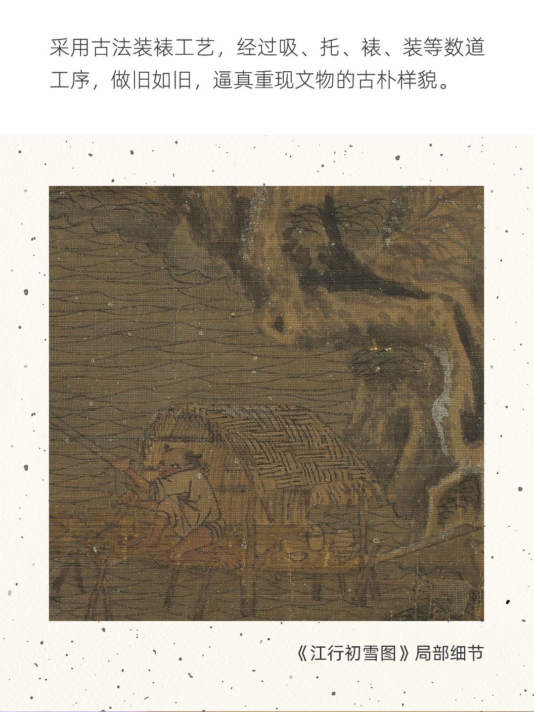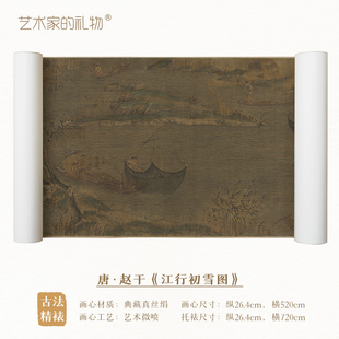 五代·赵斡《江行初雪图》手卷,真丝卷画芯,古法手工精裱 简介