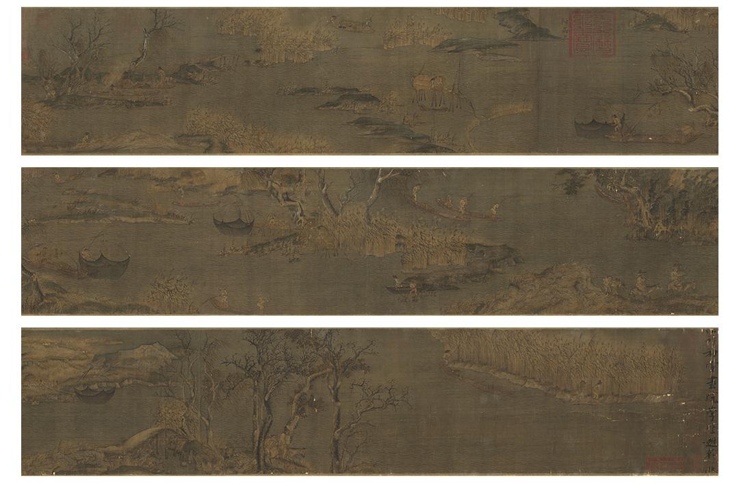 五代·赵斡《江行初雪图》手卷,真丝卷画芯,古法手工精裱