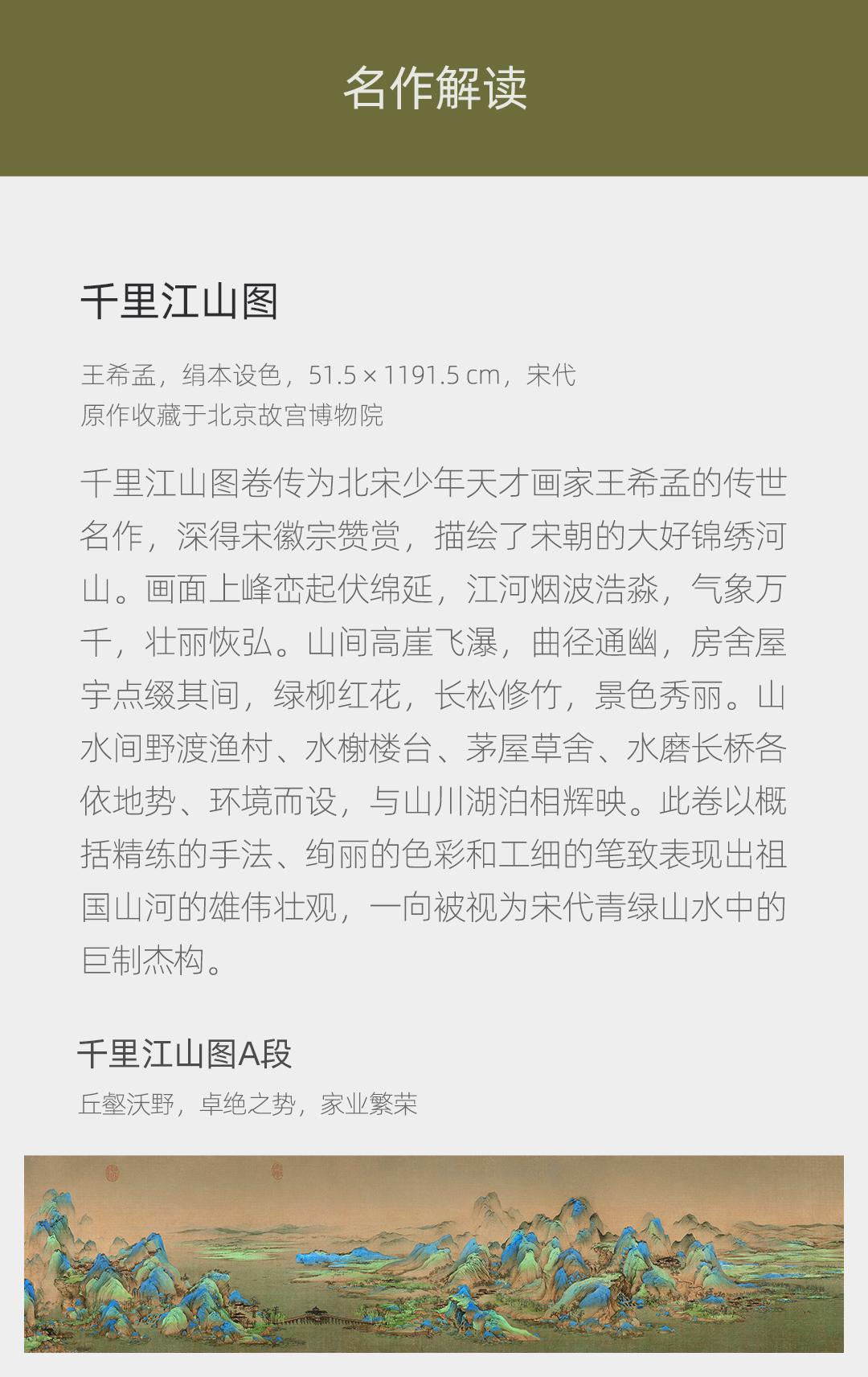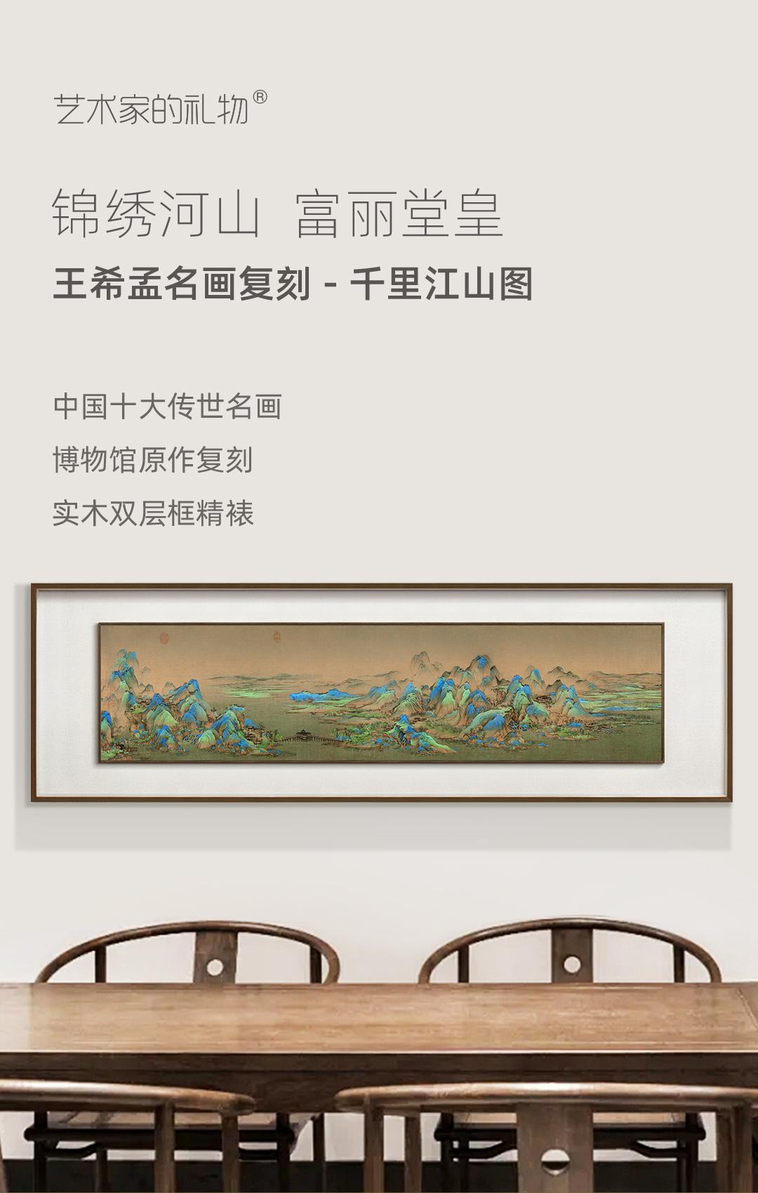 王希孟-干千里江山图新中式客厅装饰画实木框内外双层立体精裱 简介