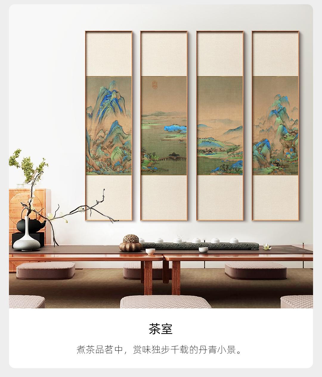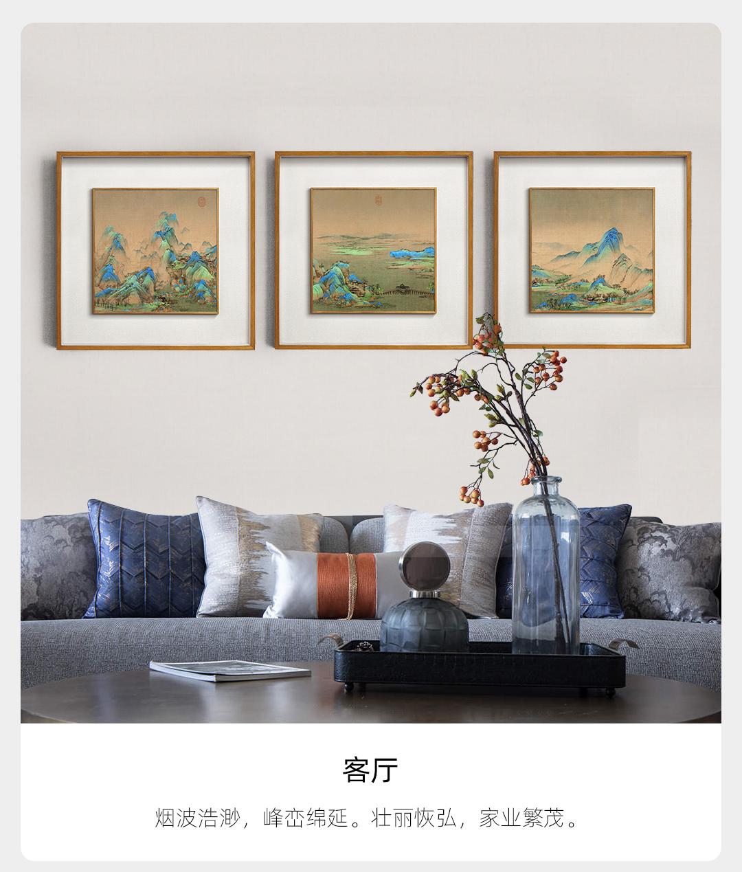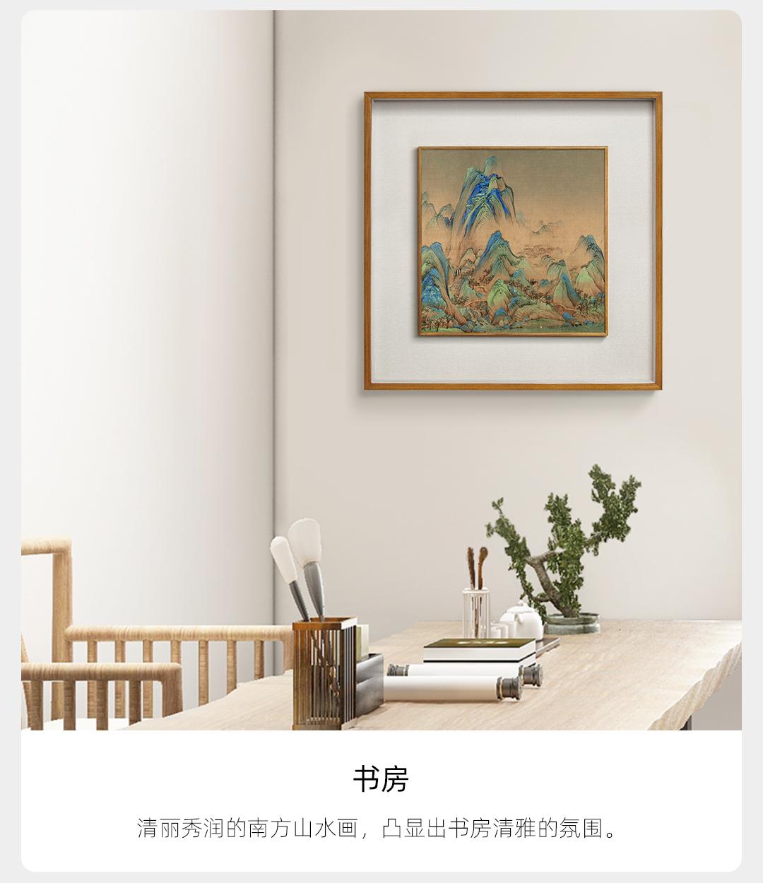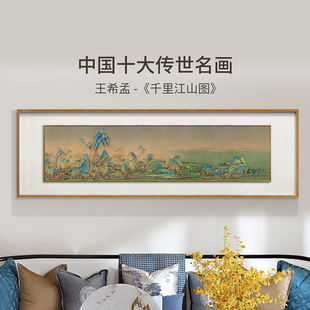 王希孟-干千里江山图新中式客厅装饰画实木框内外双层立体精裱