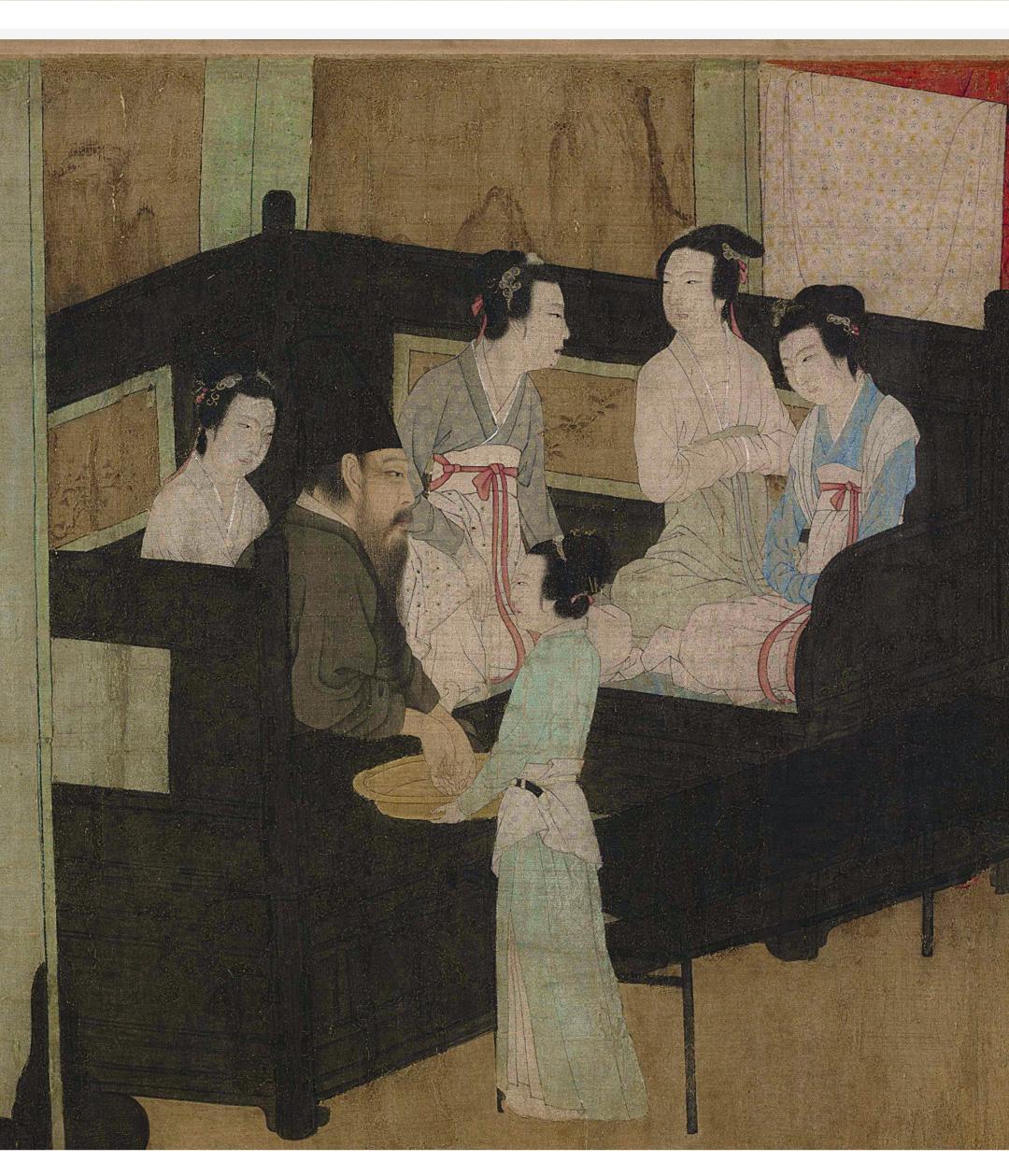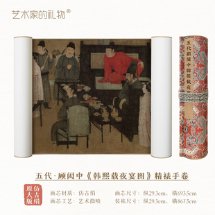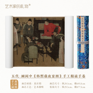 五代·顾闳中《韩熙载夜宴图》手卷仿绢/真丝画芯原作超清复刻