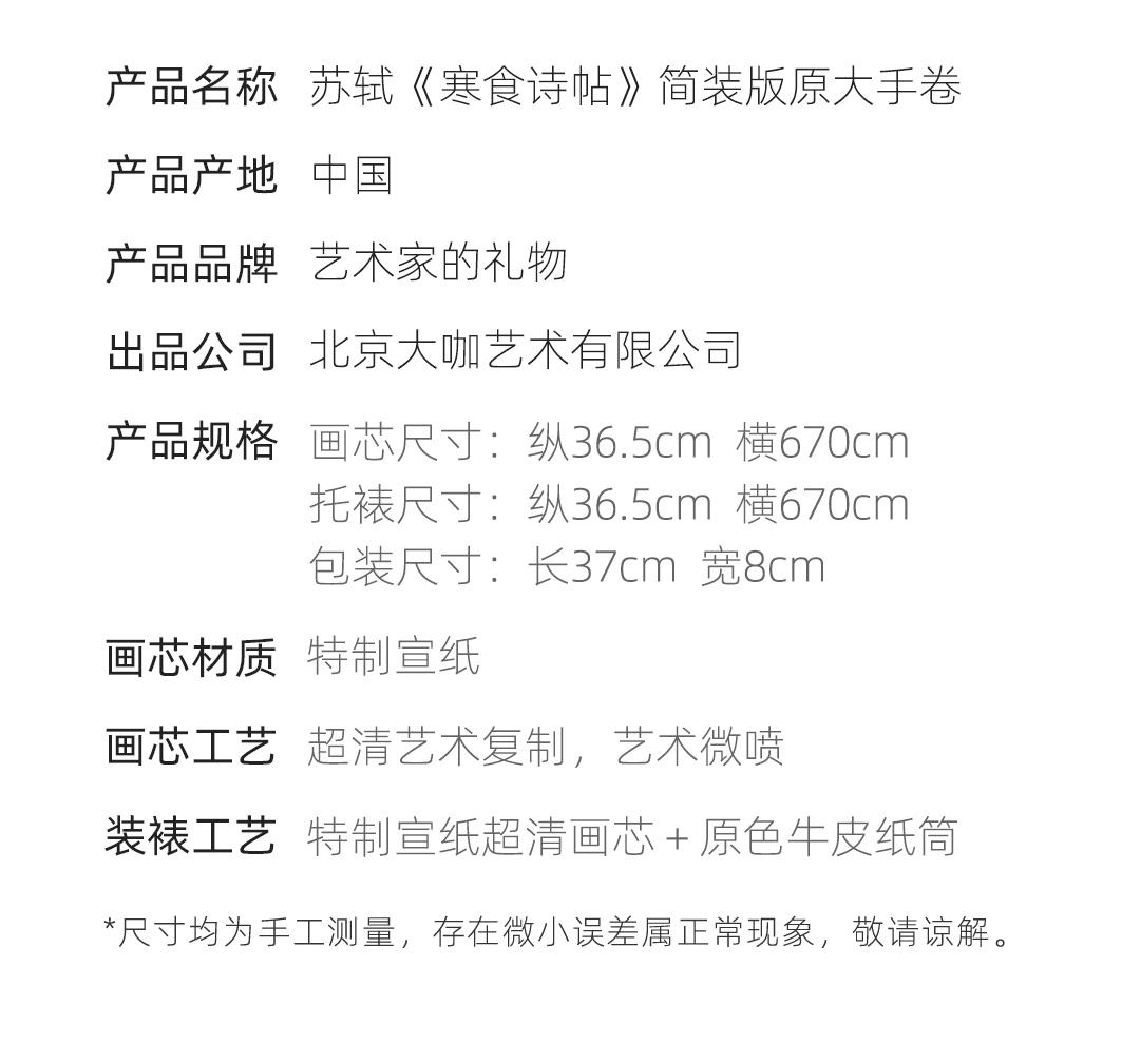 宋苏轼《寒食帖》书法手卷原作1:1复刻精裱宣纸画芯如见真迹 简介