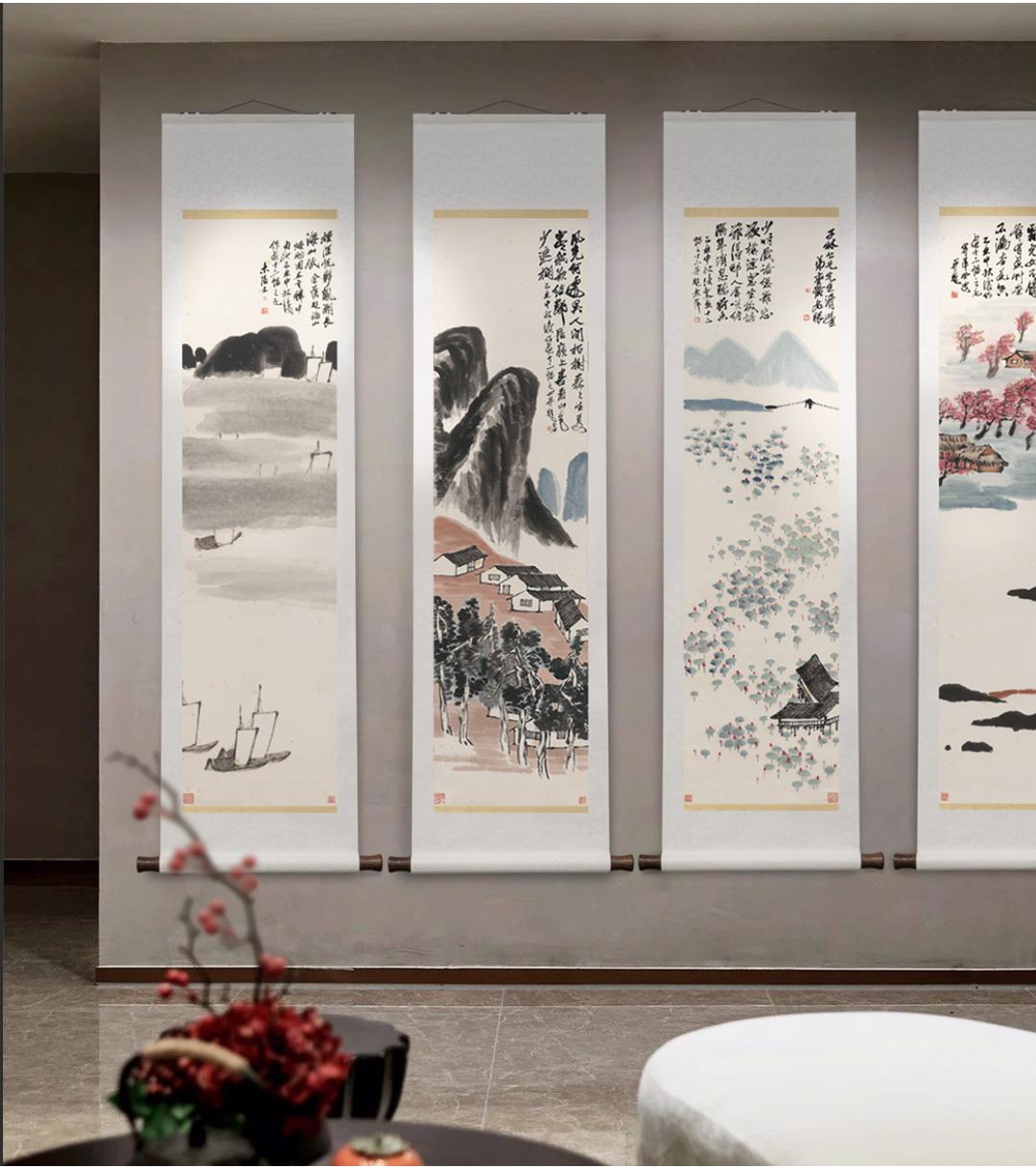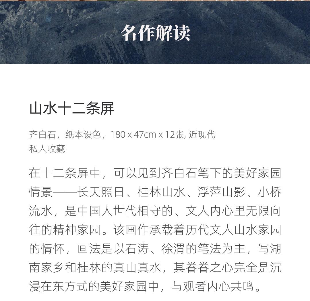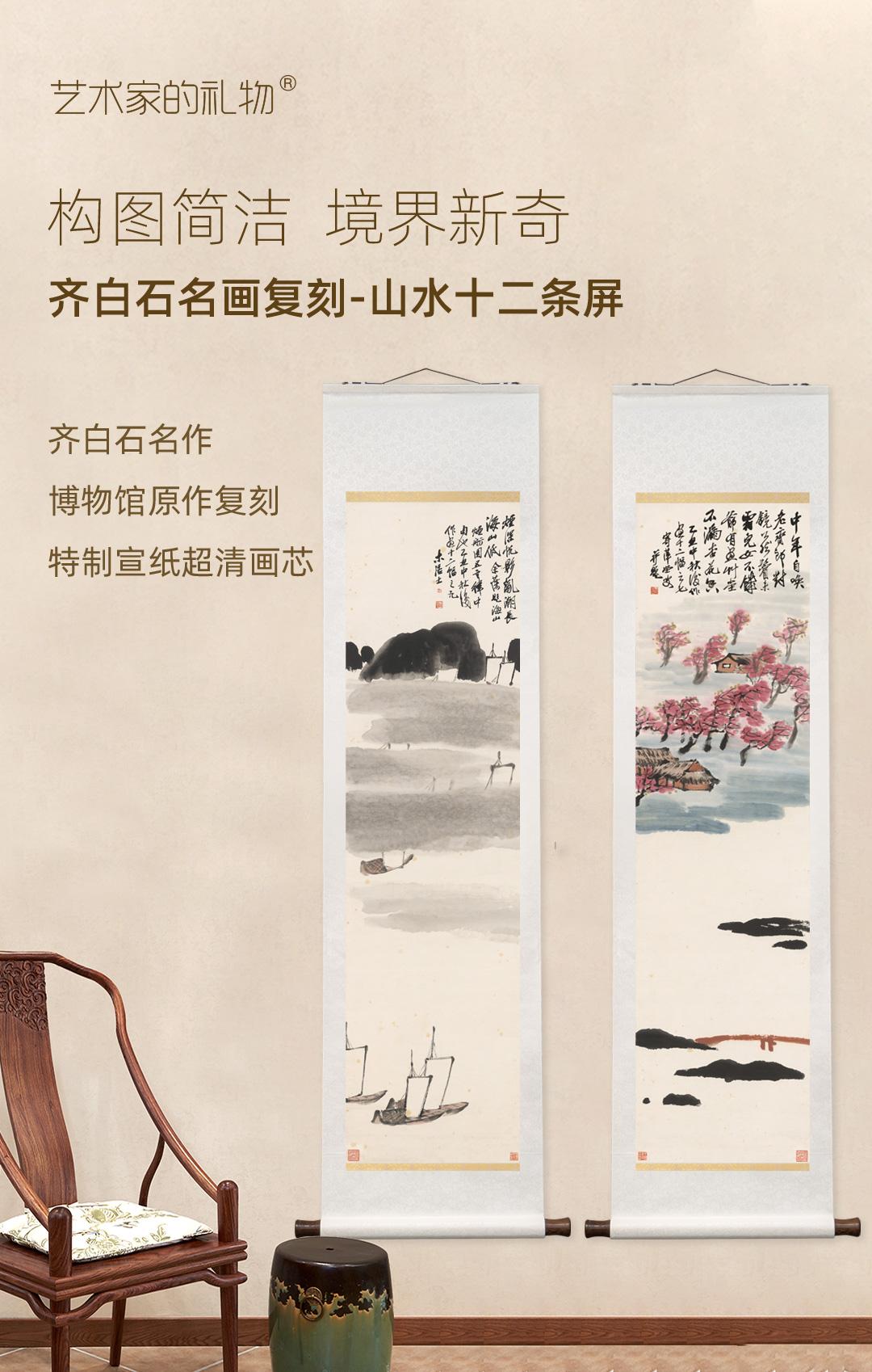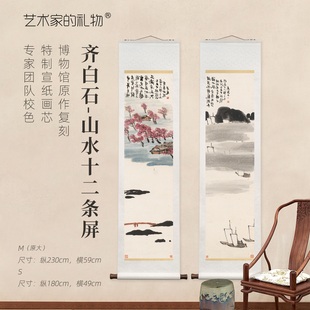 齐白石《山水十二条屏》挂轴原作超清复刻特制宣纸画芯 简介