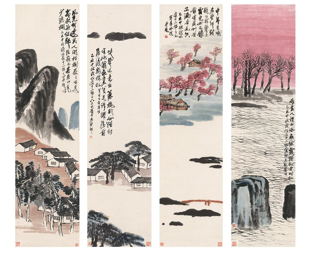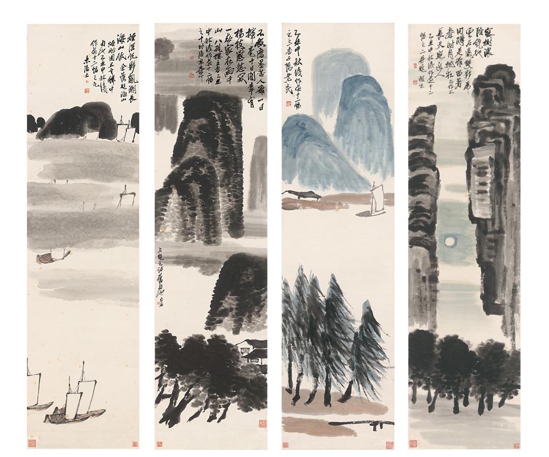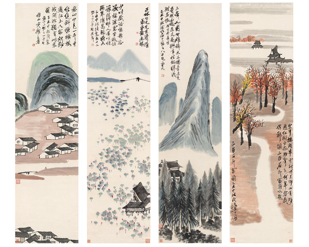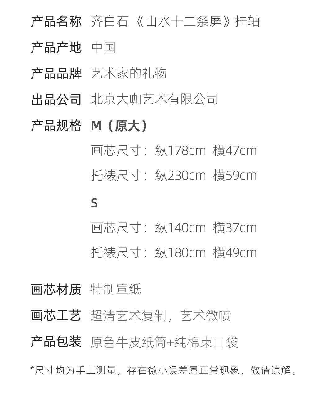 齐白石《山水十二条屏》挂轴原作超清复刻特制宣纸画芯 简介
