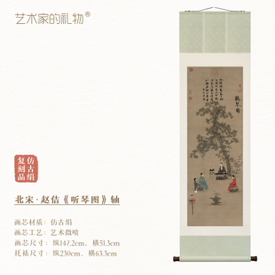 宋徽宗《听琴图》镜芯/挂轴仿古绢画芯原作超清复刻精工装裱