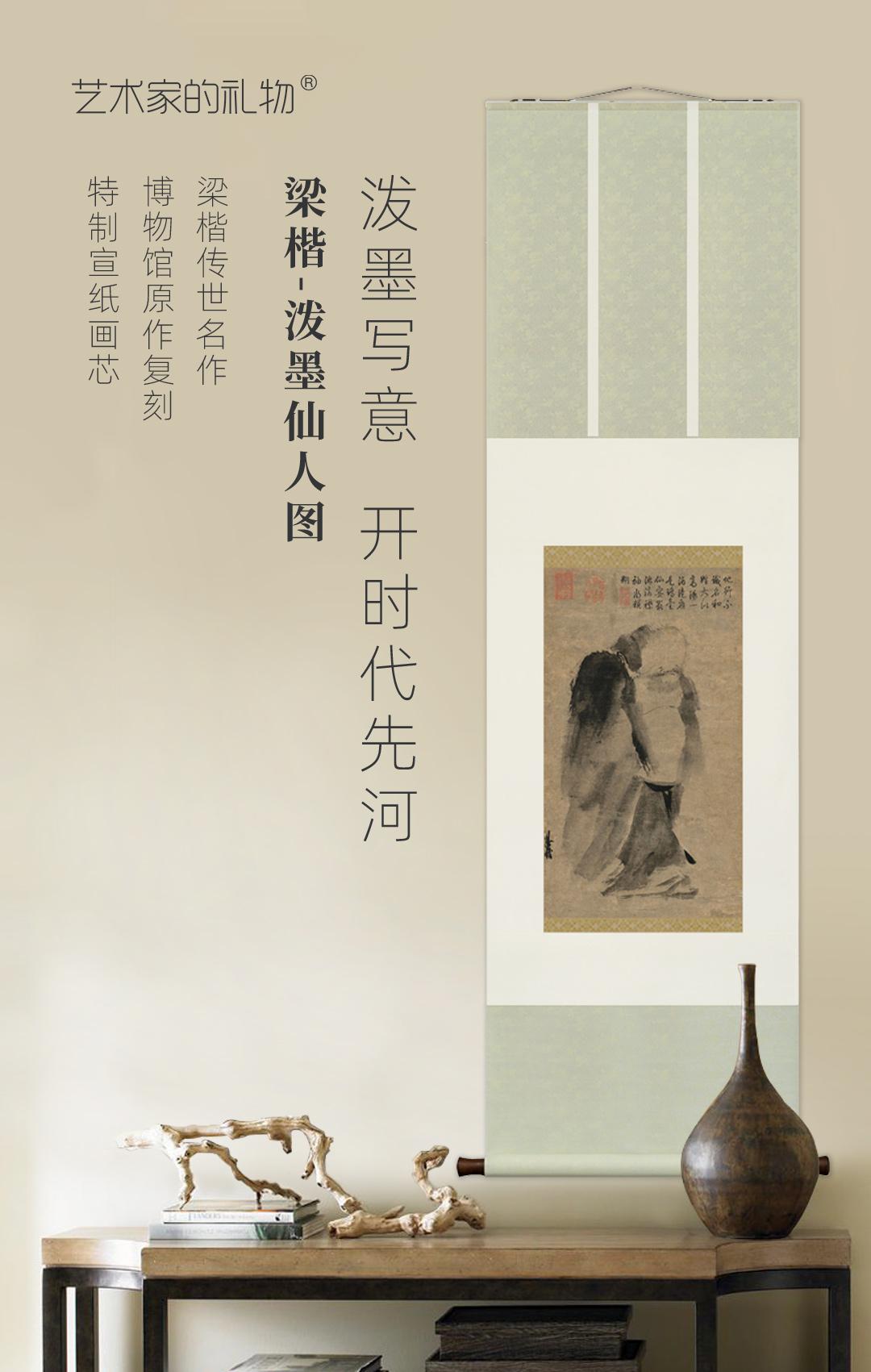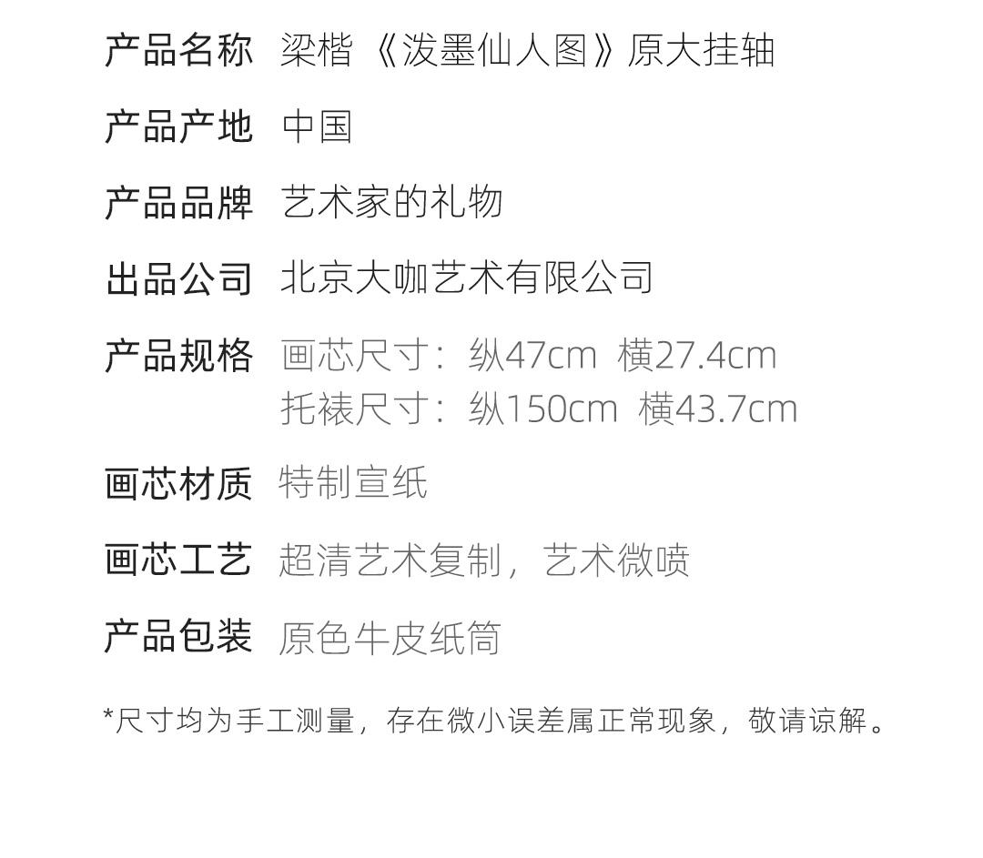 梁楷《泼墨仙人图》精裱挂轴/镜芯特制宣纸画芯超清复刻版画 简介