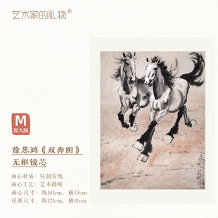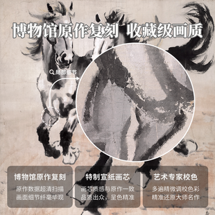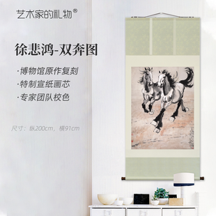 徐悲鸿《双奔图》挂轴/镜芯原作超清复刻新中式书房挂画立轴