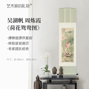 吴湖帆《荷花鸳鸯图》精裱挂轴/镜芯超清复刻版画特制宣纸画芯