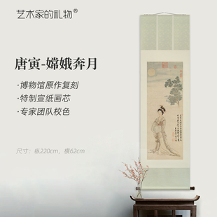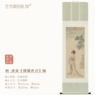 明·唐寅《嫦娥奔月》精裱挂轴/镜芯特制宣纸画芯原作超清复刻 简介