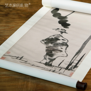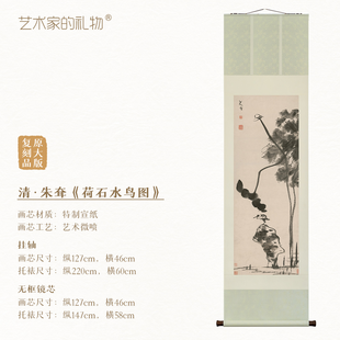朱耷《荷石水鸟图》挂轴/镜芯,原作超清复刻版画,特制宣纸画芯