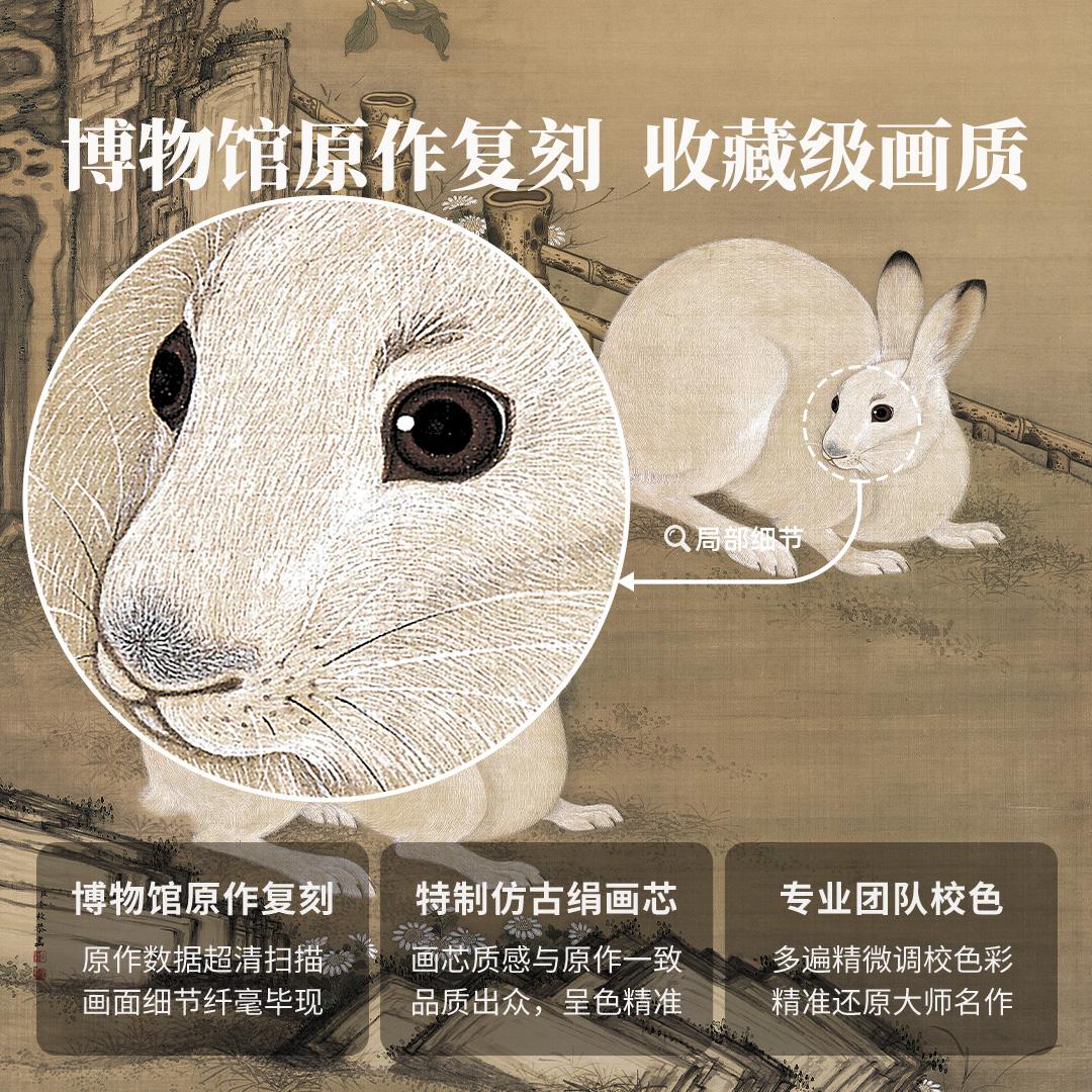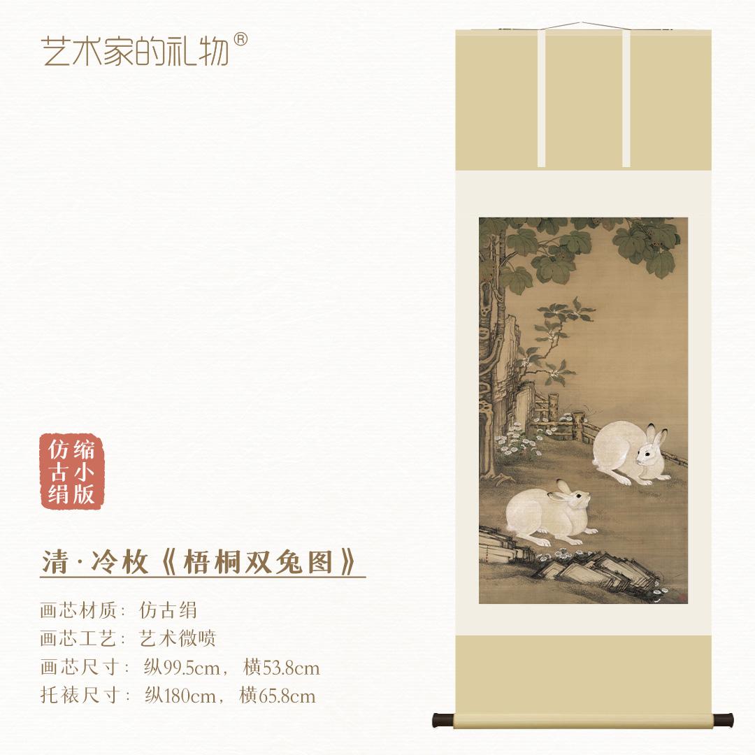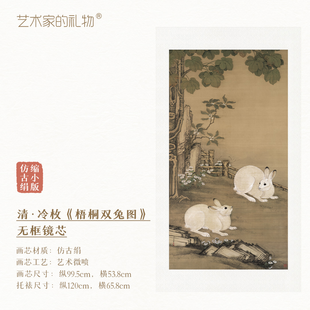 清·冷枚《梧桐双兔图》挂轴/镜芯 绢丝画芯 原作超清复刻精裱 简介
