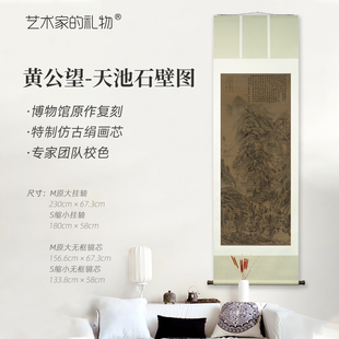 黄公望《天池石壁图》镜芯挂轴 博物馆原作超清复刻 仿古绢丝画芯
