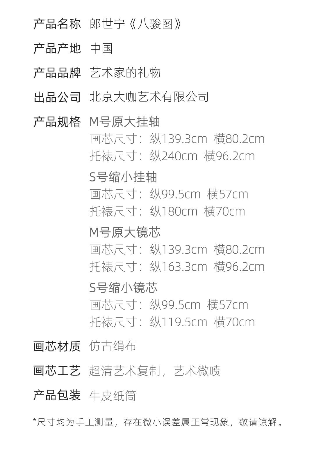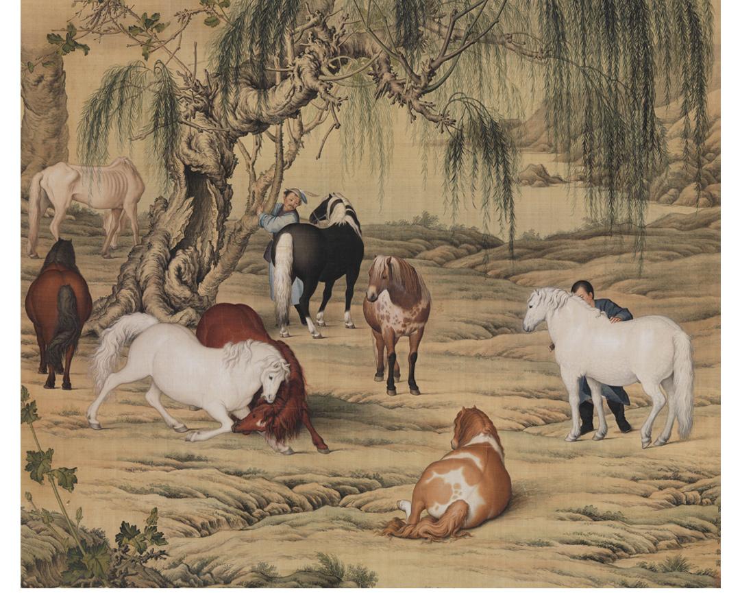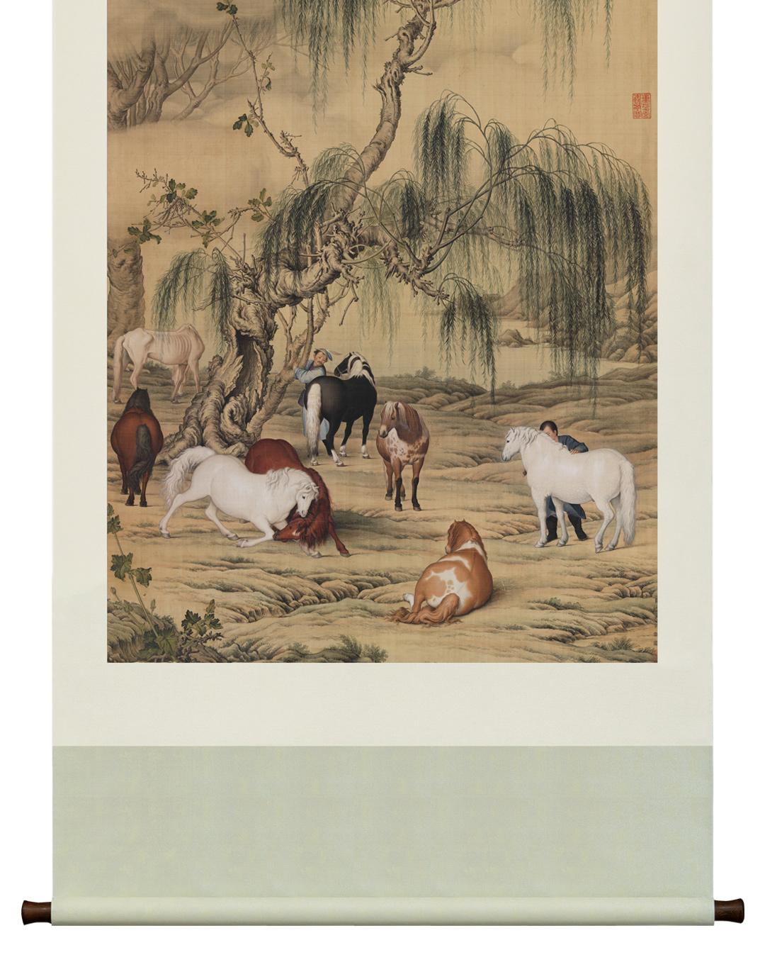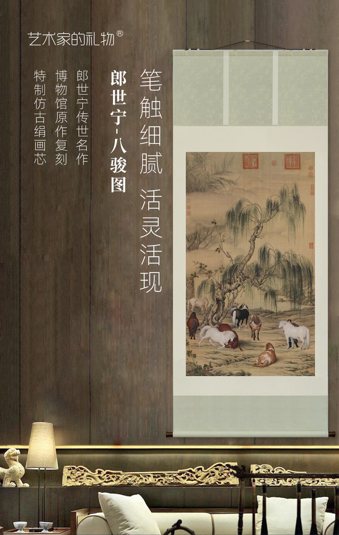 郎世宁《八骏图》挂轴/镜芯 博物馆原作超清复刻 仿古绢丝画芯 简介