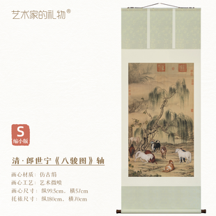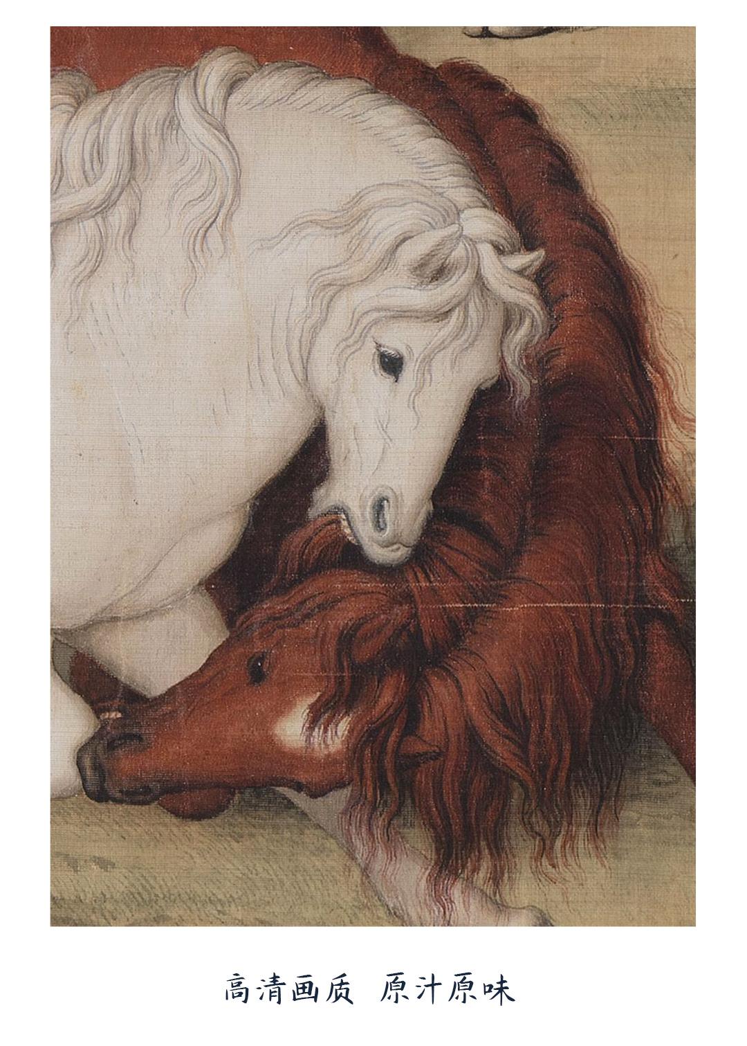 郎世宁《八骏图》挂轴/镜芯 博物馆原作超清复刻 仿古绢丝画芯