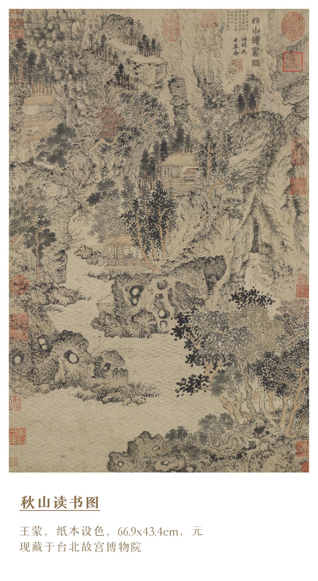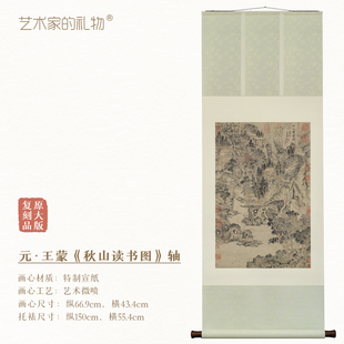元·王蒙《秋山读书图》原大复刻 特制宣纸画芯 精工装裱镜芯挂轴 简介