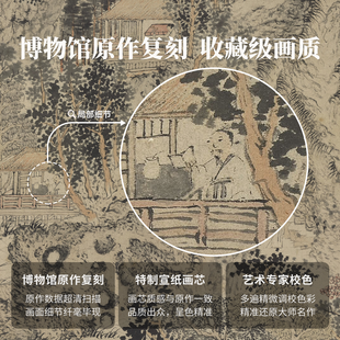 元·王蒙《秋山读书图》原大复刻 特制宣纸画芯 精工装裱镜芯挂轴