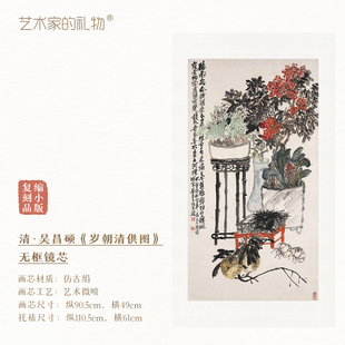 清·吴昌硕《岁朝清供图》挂轴/镜芯 绢丝画芯 原作超清复刻精裱 简介