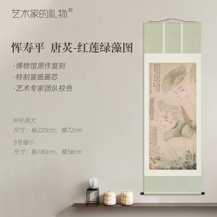 清·唐炗/恽寿平《红莲绿藻图》挂轴 宣纸画芯 原作超清复刻精裱
