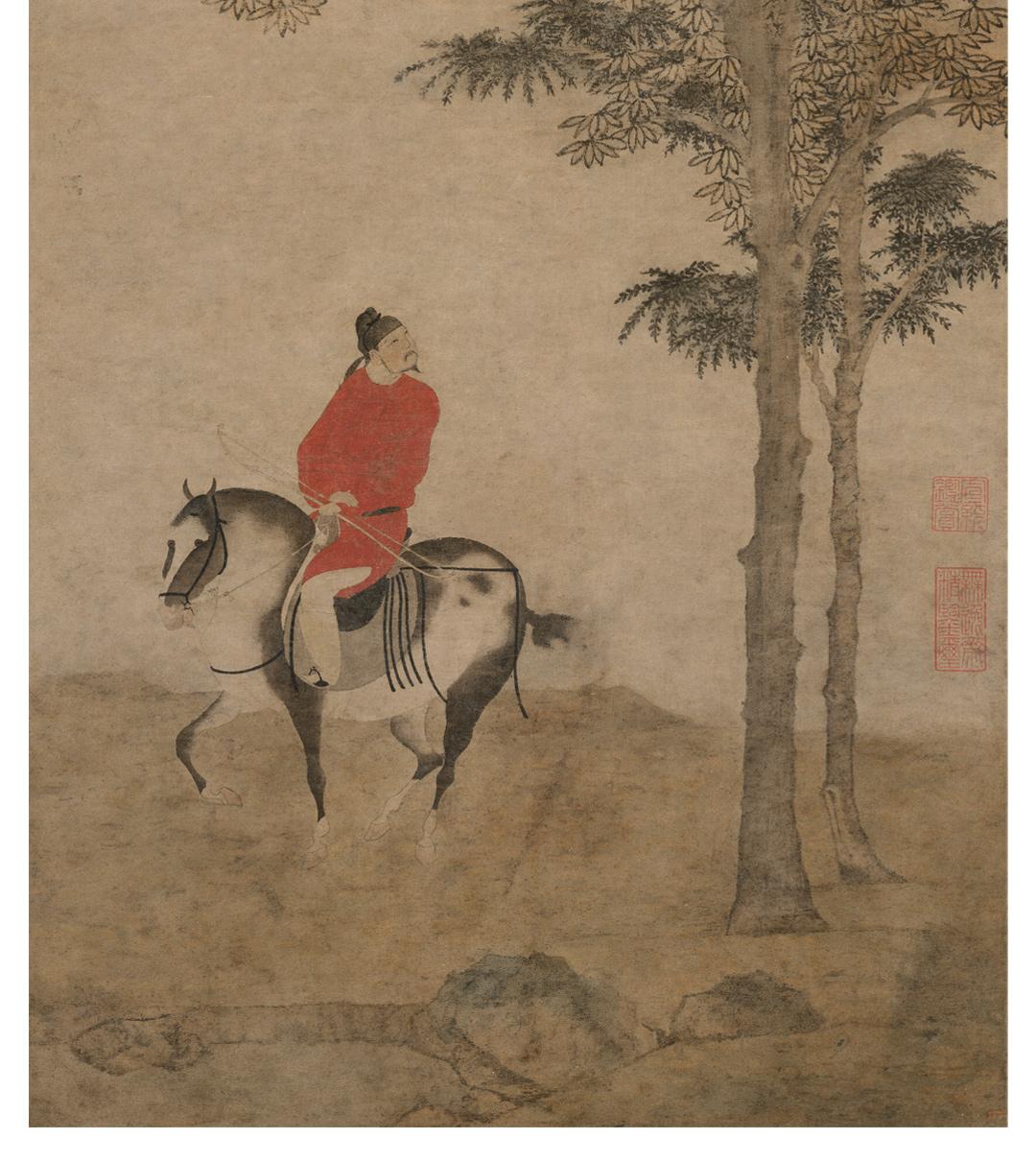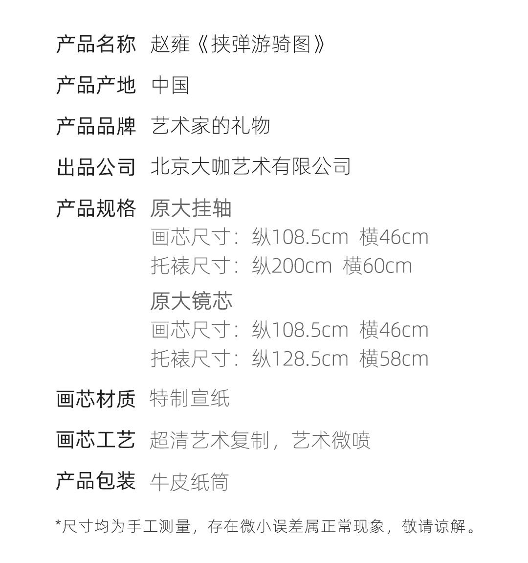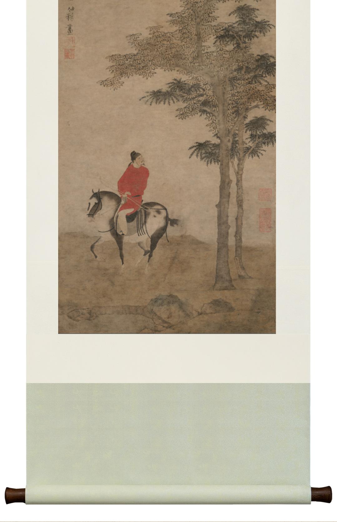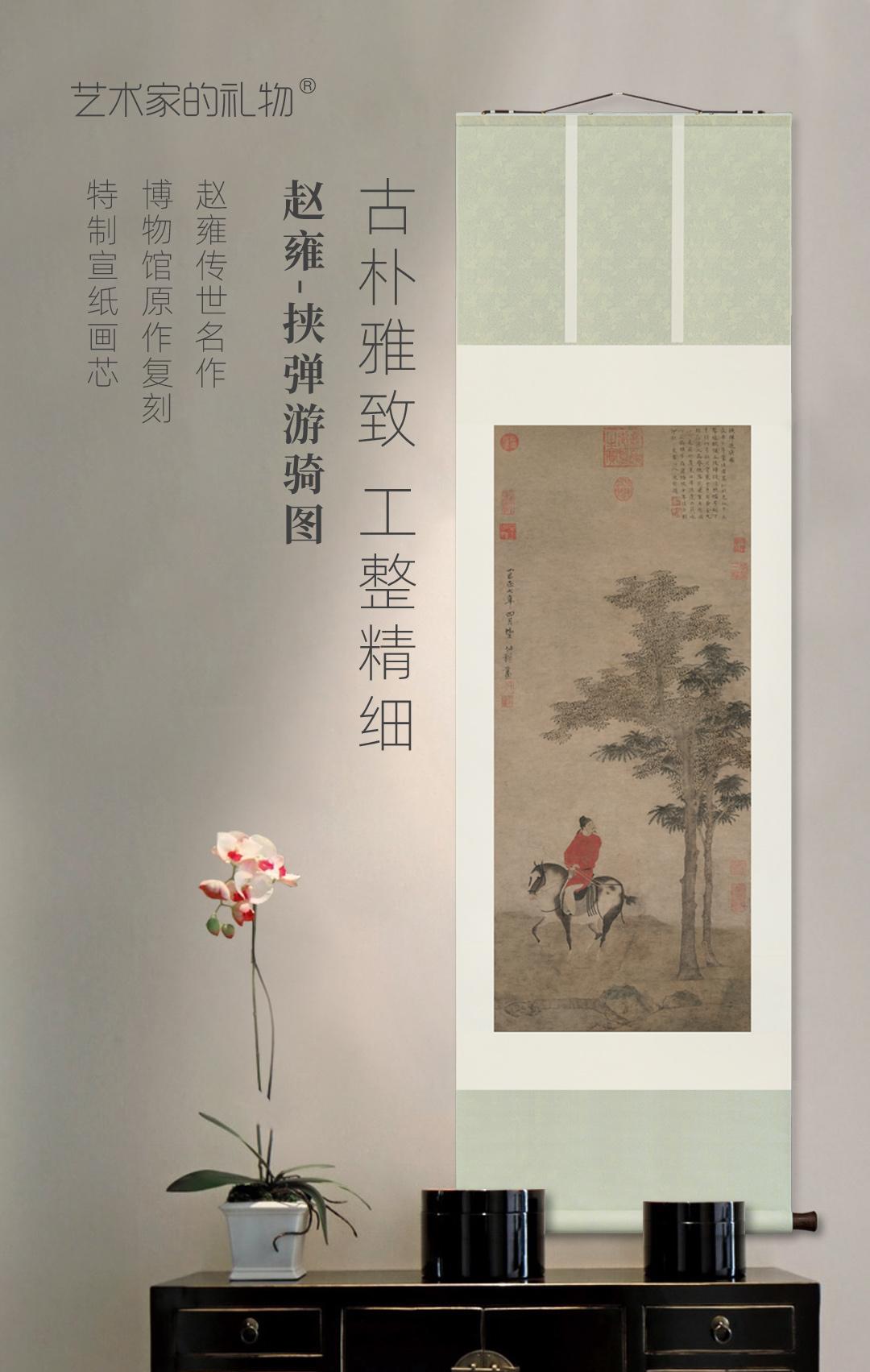 赵雍《挟弹游骑图》精裱挂轴/镜芯 原作超清复刻 特制宣纸画芯 简介